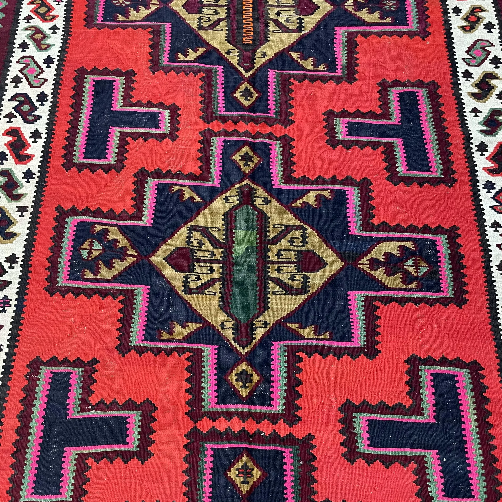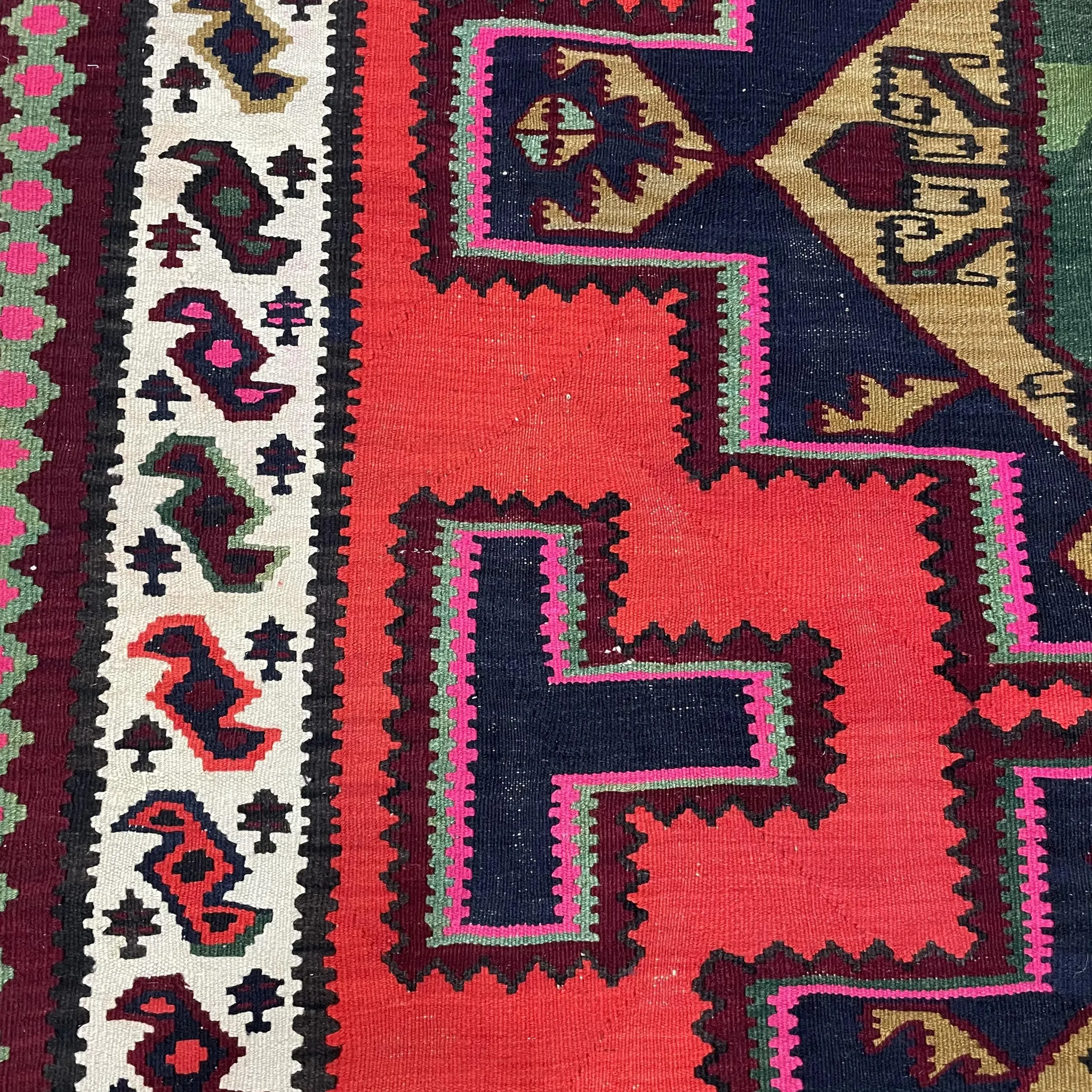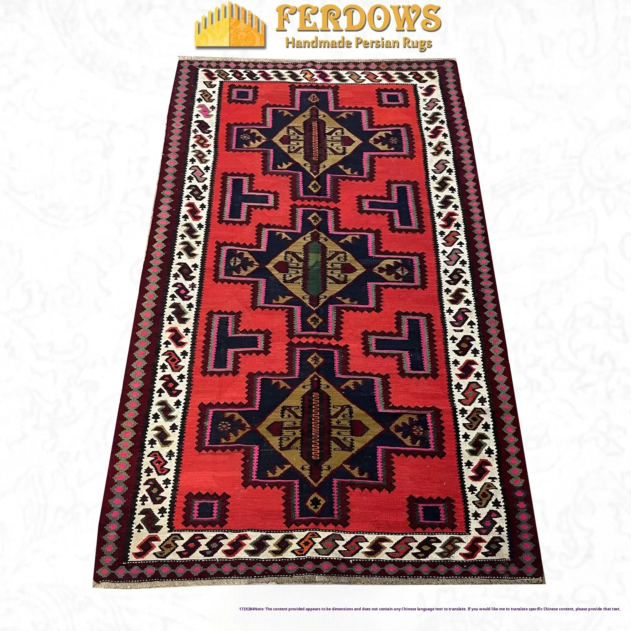 FERDOWS Authentic Imported Kilim Rug - Handwoven Pure Wool with Exotic Geometric Bohemian Design