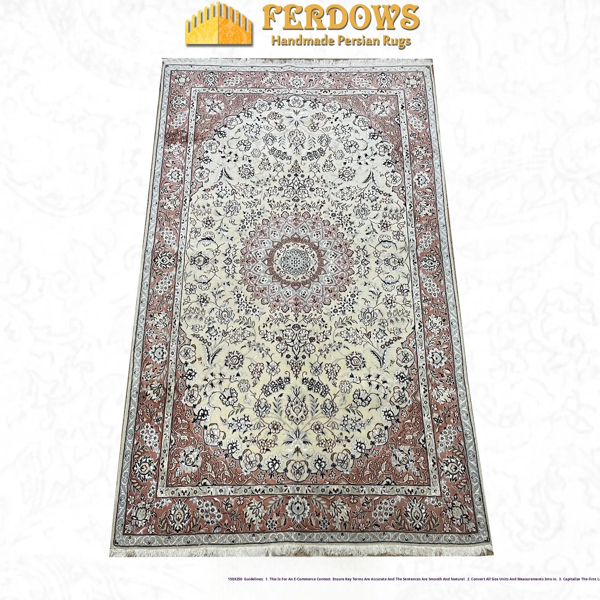 FERDOWS Authentic Imported Persian Carpet - Handcrafted Pure Wool, Elegant European & American Style for Living Room & Bedroom