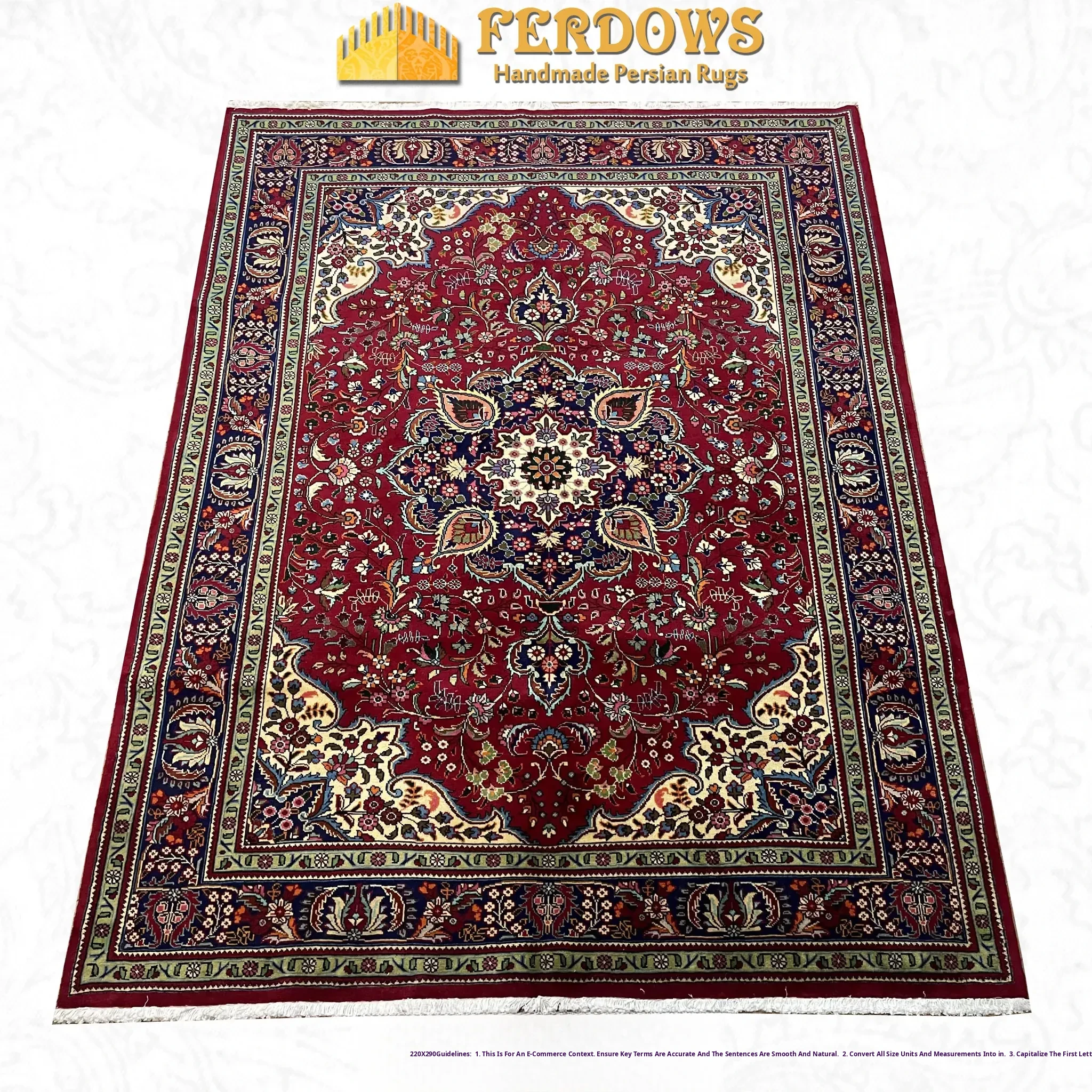 FERDOWS Authentic Persian Carpet - Hand-Knotted Pure Wool, European & American Style, New Chinese & French Classical Design, Exquisite Craftsmanship for Luxurious Home Decor