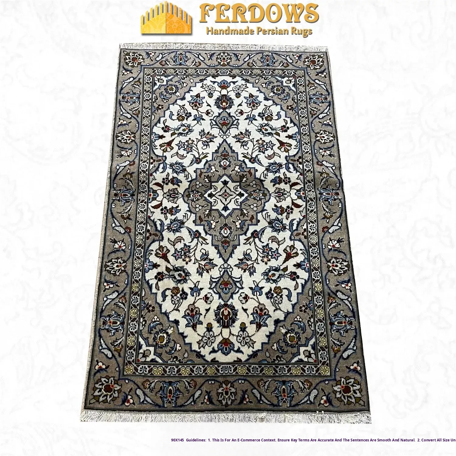 FERDOWS Authentic Persian Carpet - Hand-Knotted Pure Wool European French Style Area Rug for Bedroom or Bedside Decor - Luxurious and Elegant Design