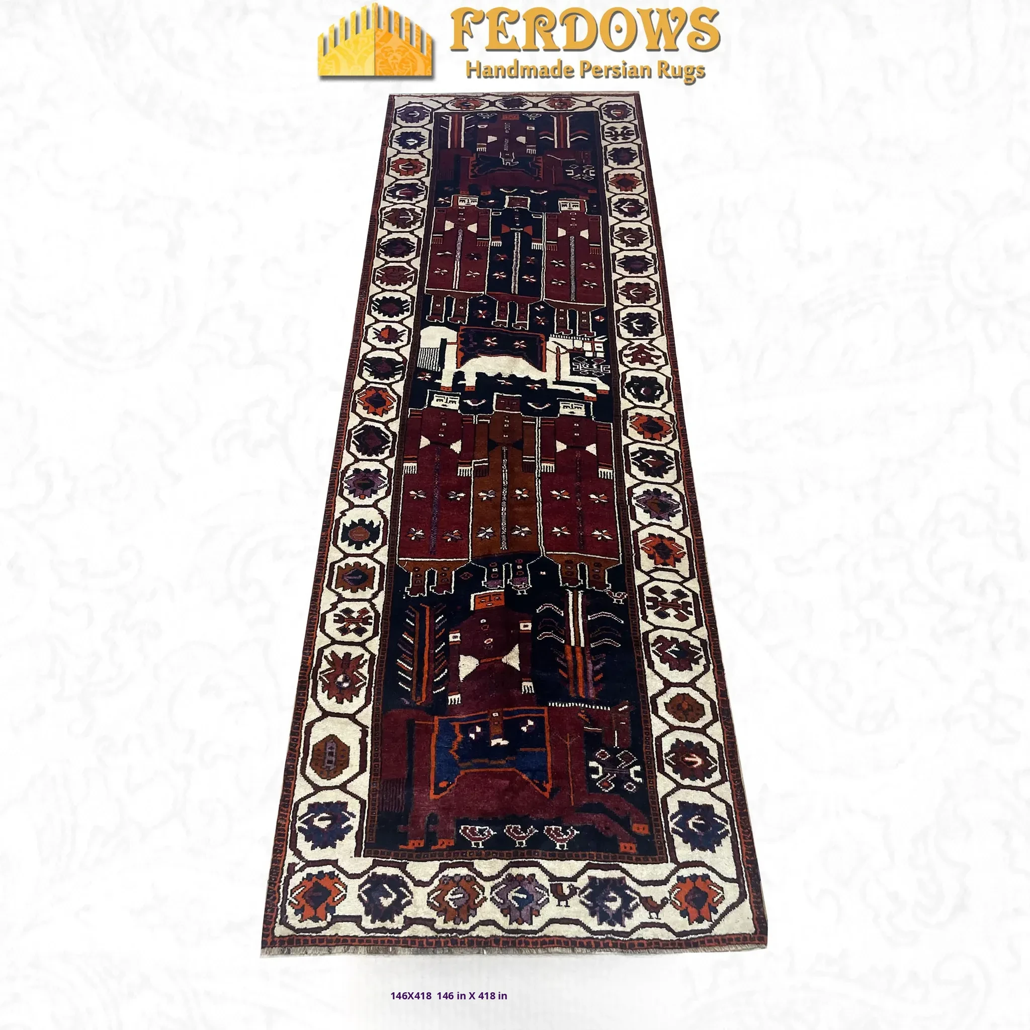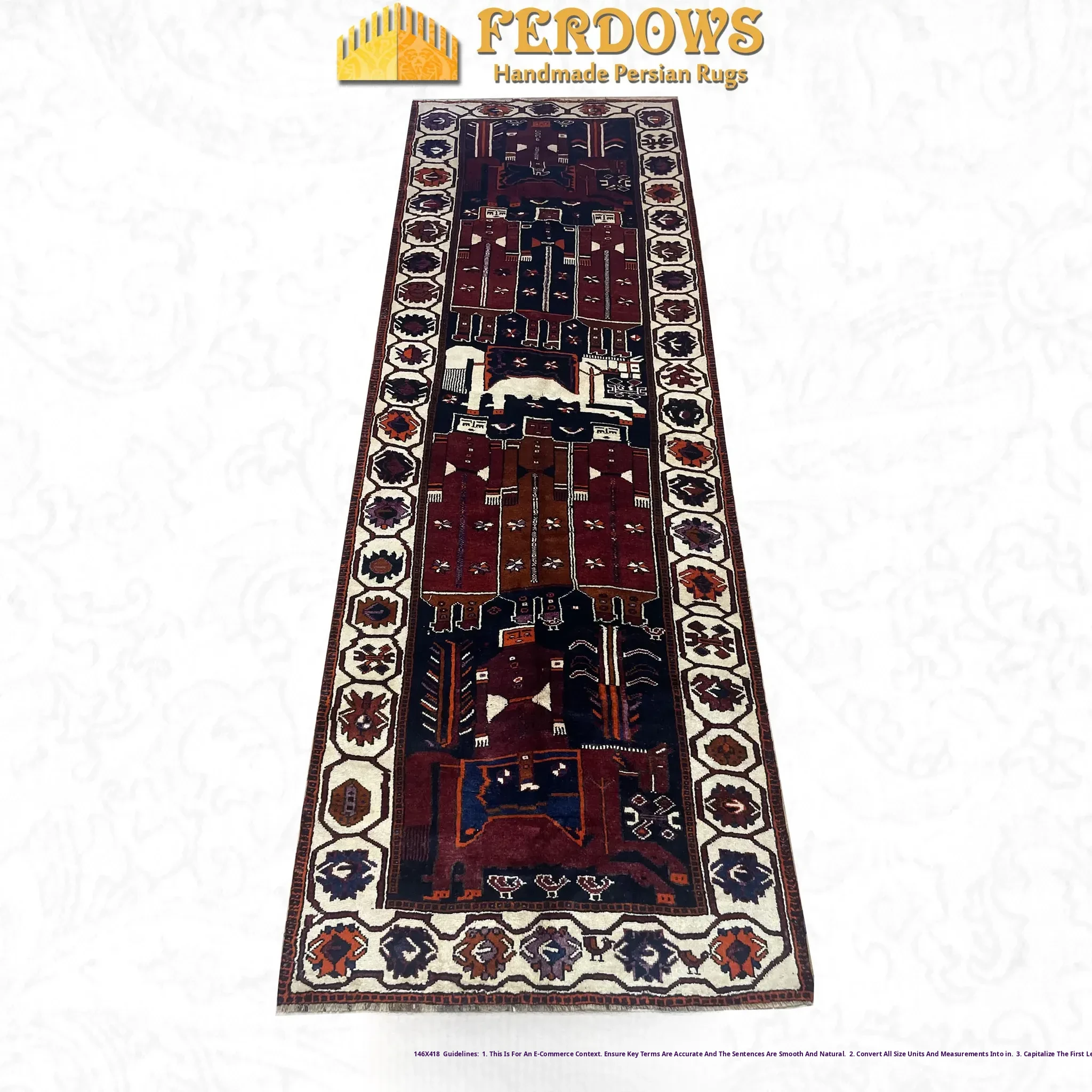 FERDOWS Authentic Persian Carpet - Hand-Knotted Pure Wool Runner Rug for Hallways, Featuring Animal and Equine Designs - Imported Quality for Elegant Home Décor