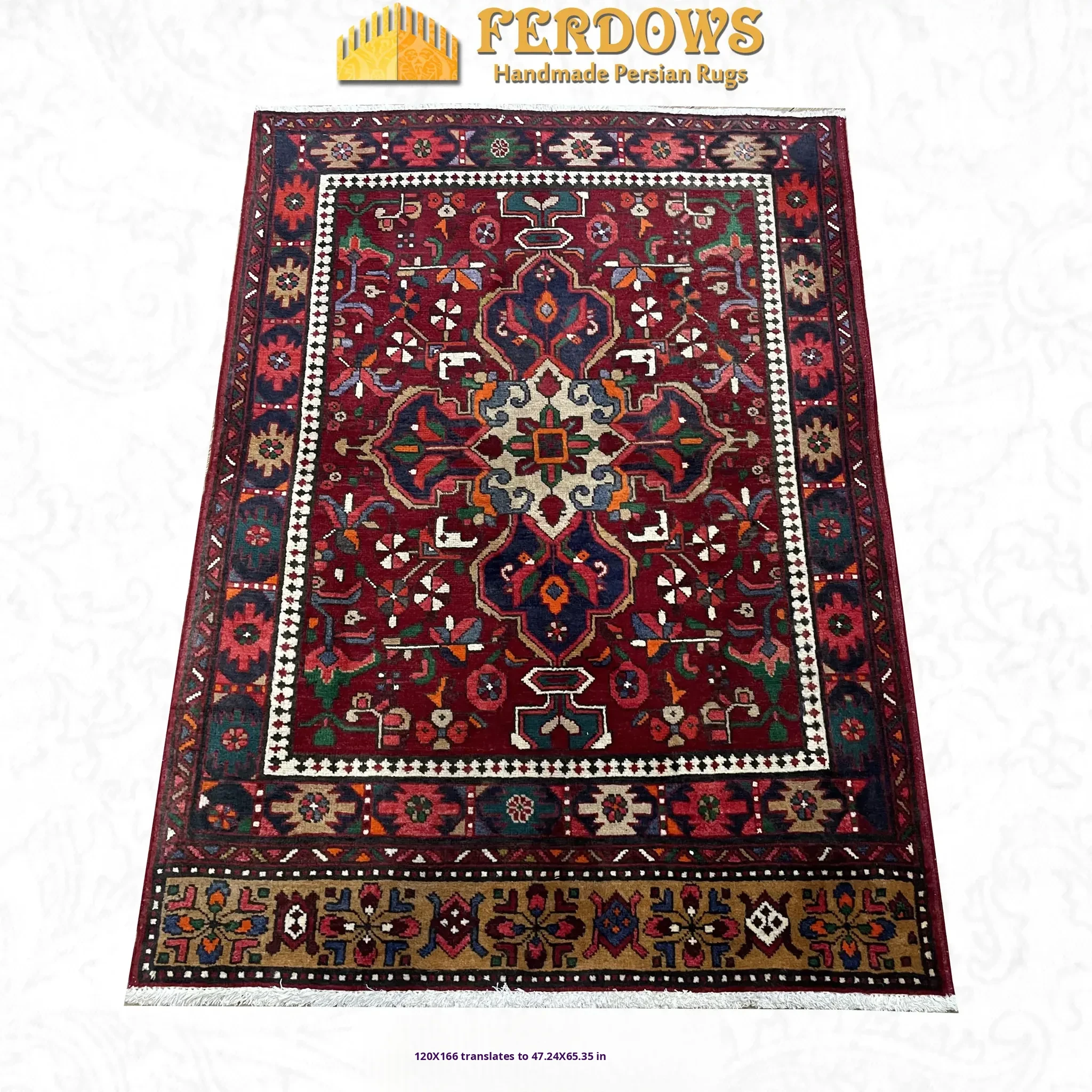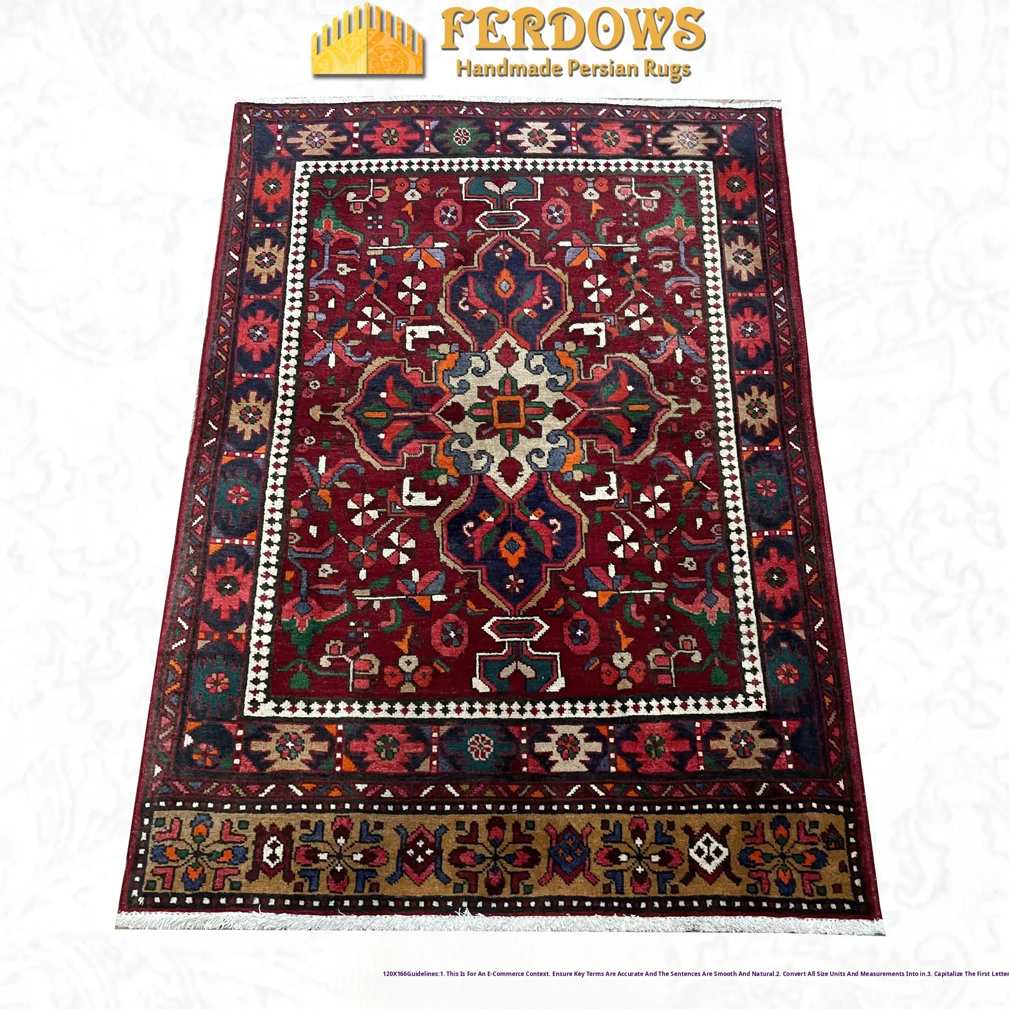 FERDOWS Authentic Persian Carpet - Hand-Knotted, Pure Wool, Vibrant Red, New Chinese Style & American Design, Perfect for Elegant Home Décor