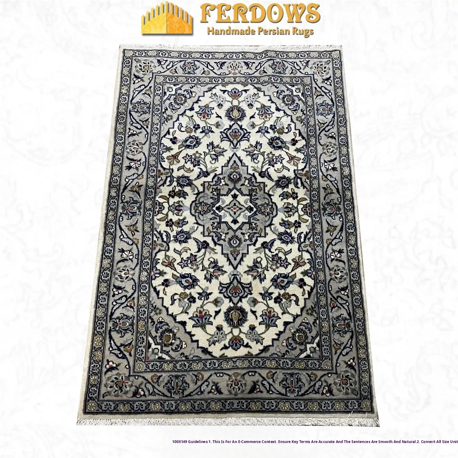 FERDOWS Authentic Persian Carpet - Handmade Knotted 100% Wool, European French Style, Perfect for Your Bedroom or Bedside Decor