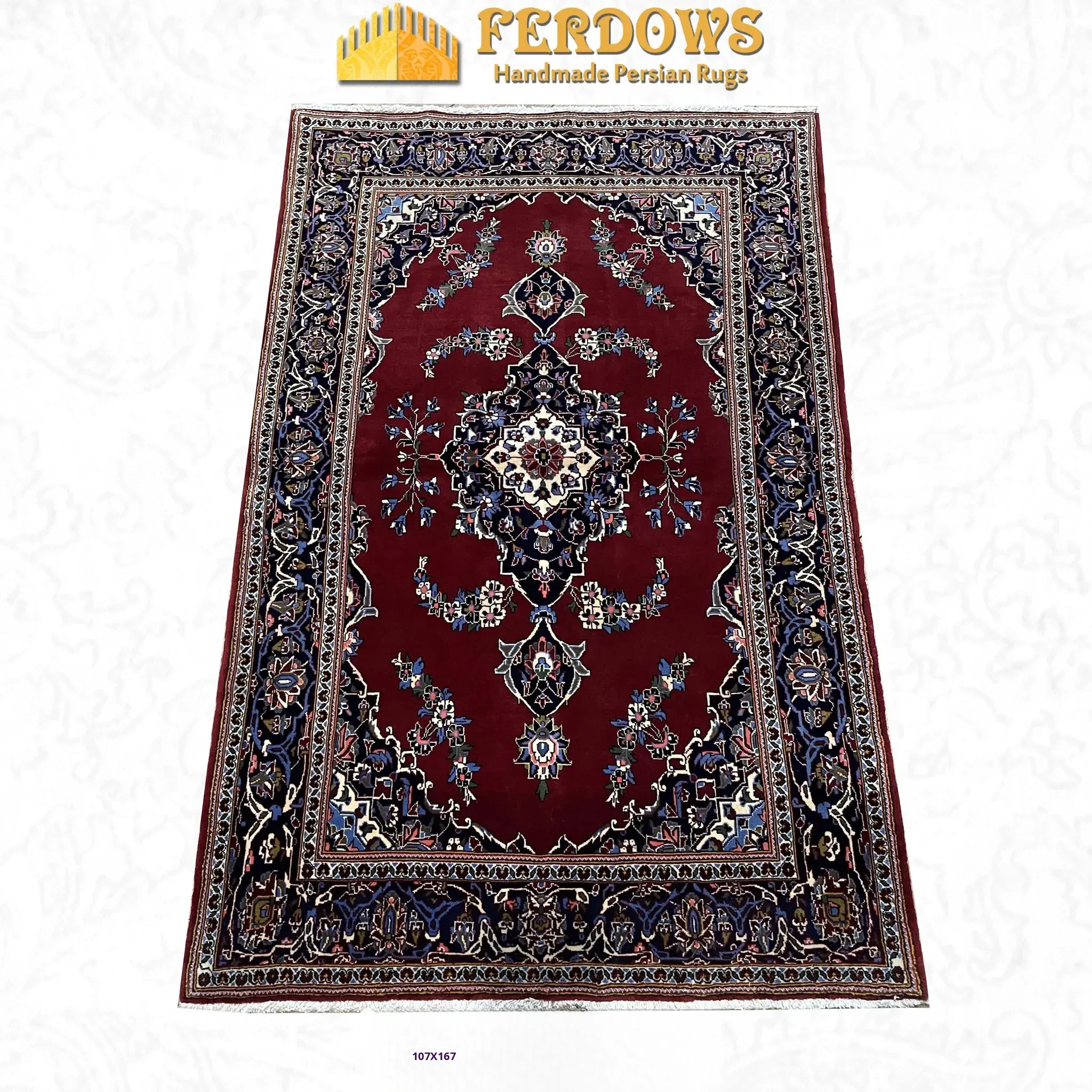 FERDOWS Authentic Persian Hand-Knotted Wool Carpet – Elegant European & American Style for Modern Chinese Bedrooms, Perfect for Bedside Décor