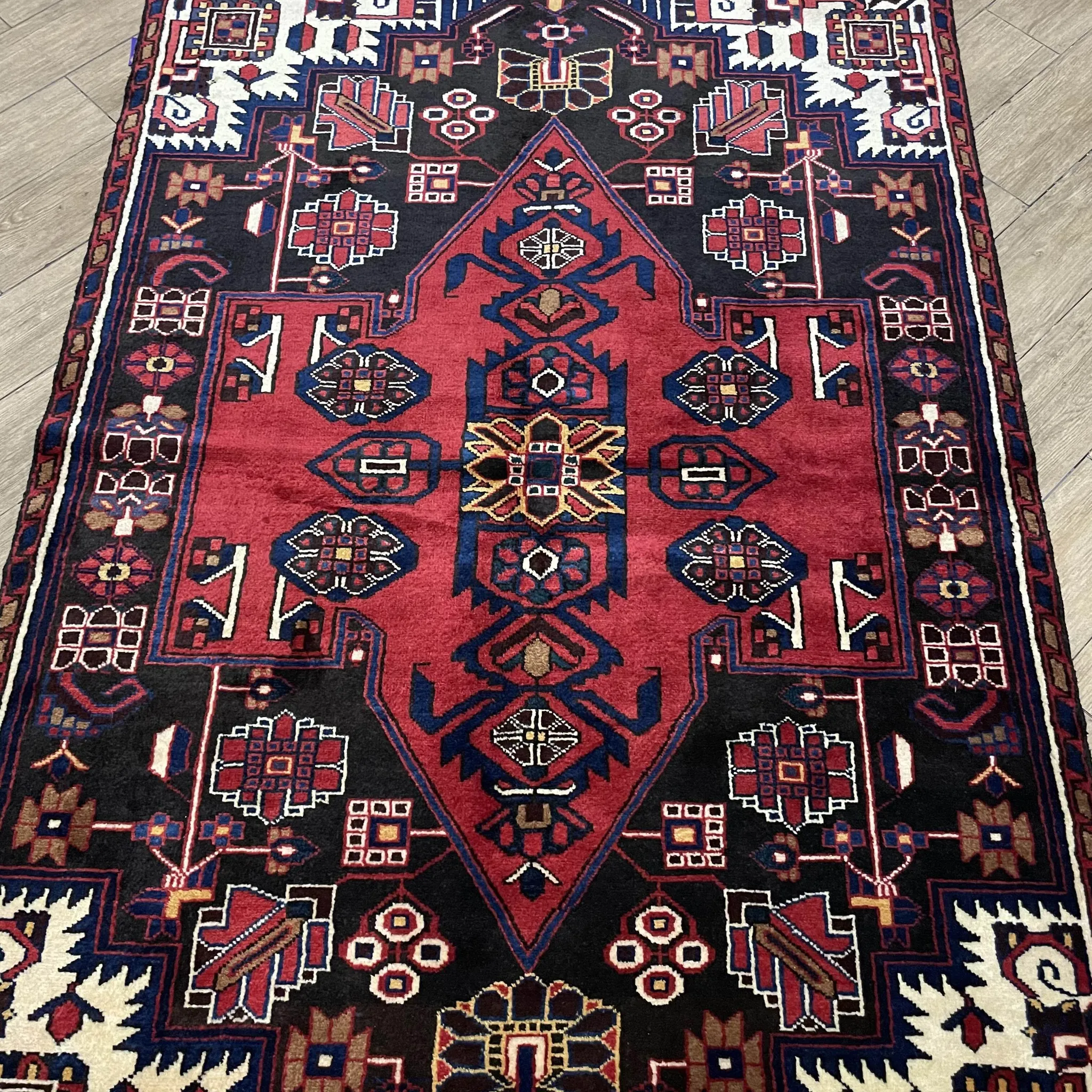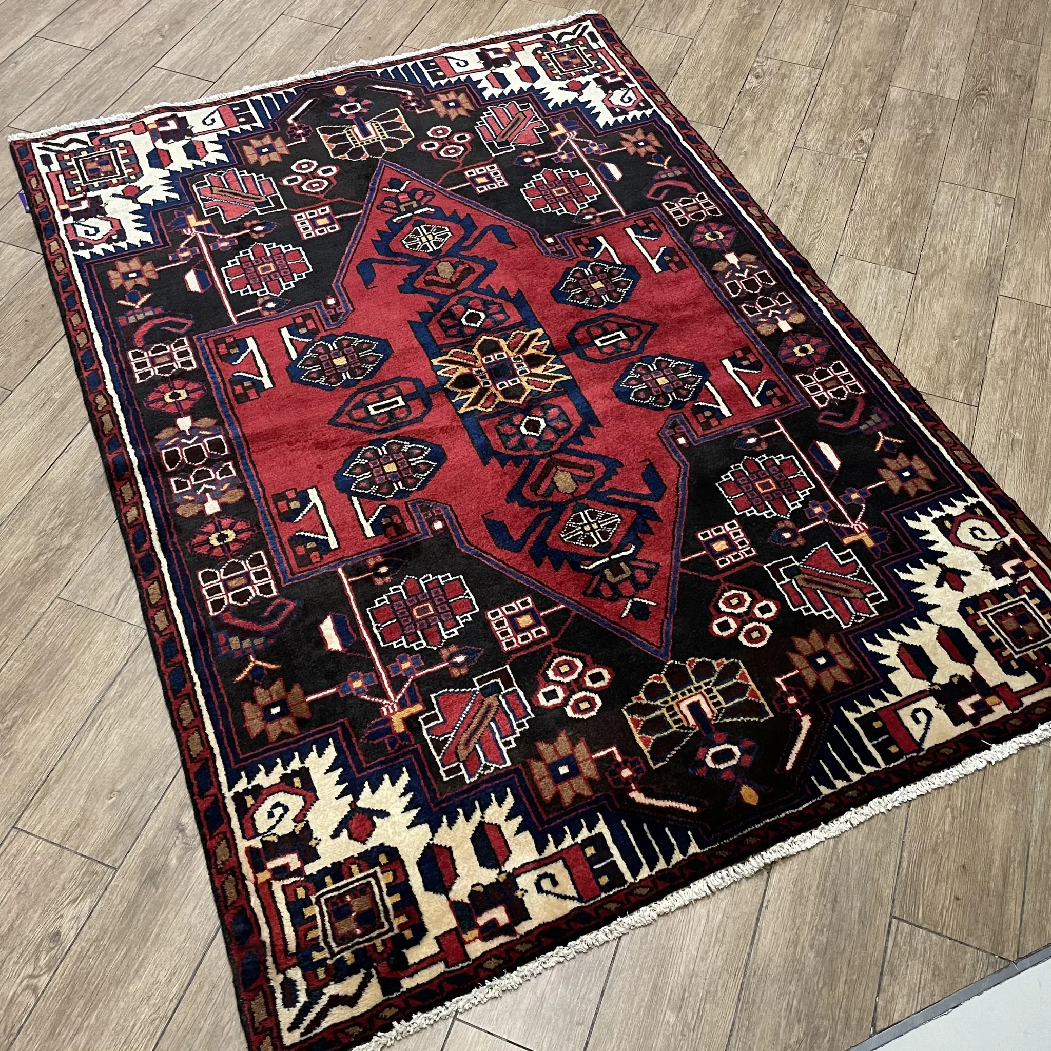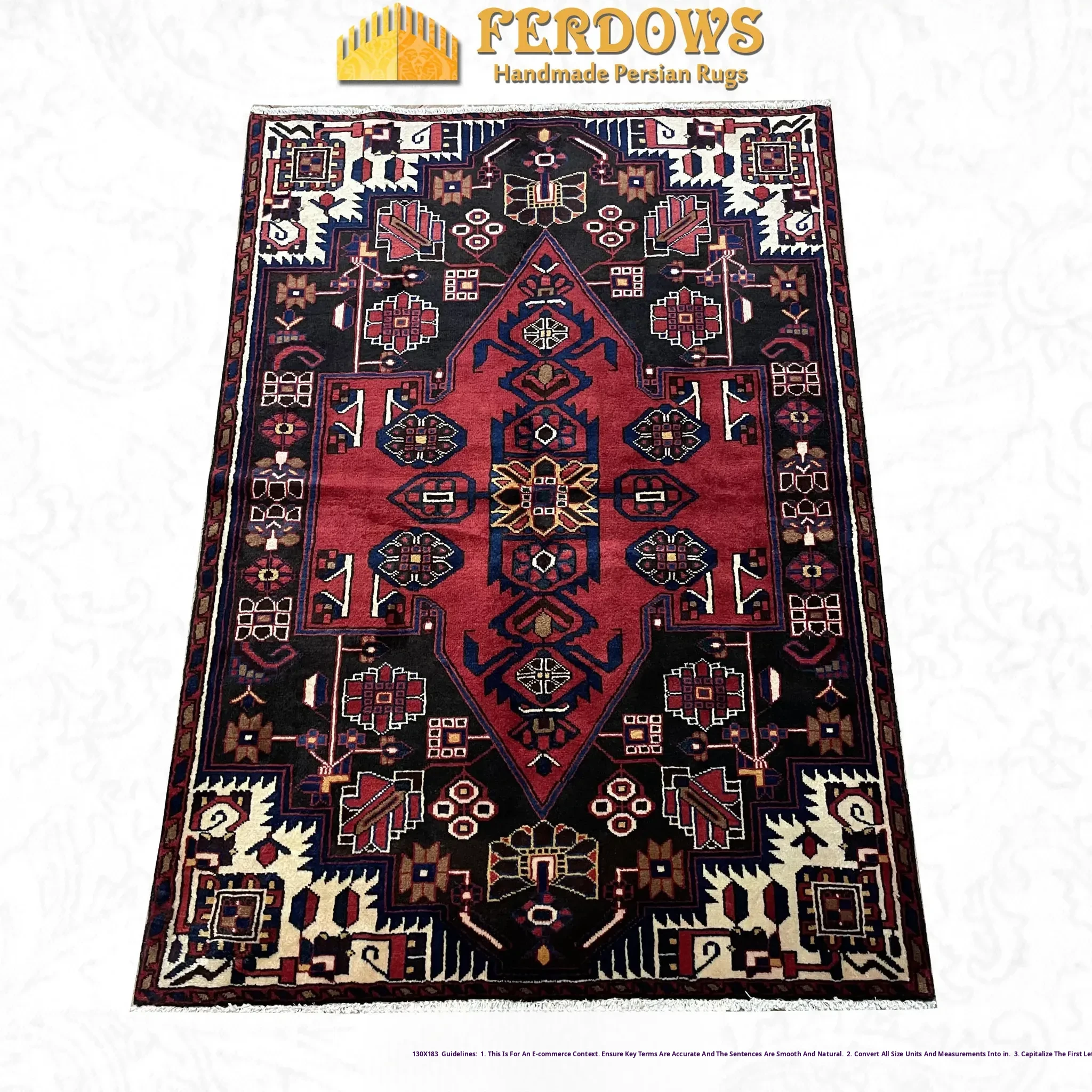 FERDOWS Authentic Persian Hand-Knotted Wool Rug - Vintage American Tribal Nomadic Style for Living Room