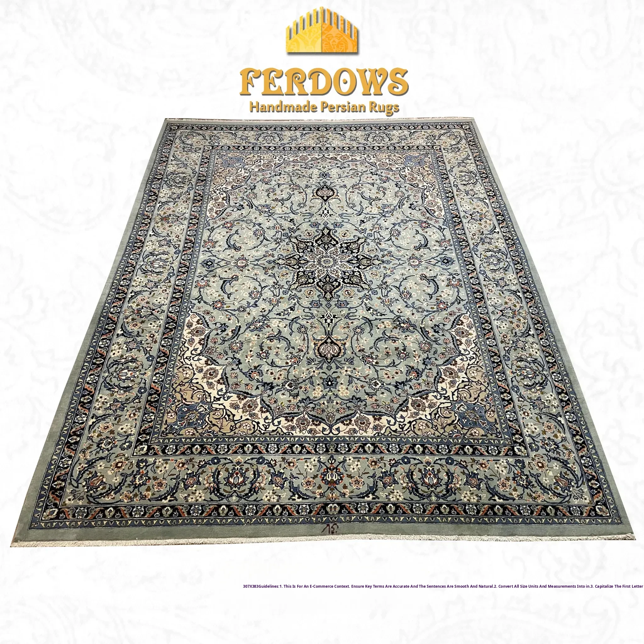 FERDOWS Designer Signature Handmade Wool Carpet – Luxurious Hand-Knotted Area Rug for Villa Living Room, Perfect for Full Coverage
