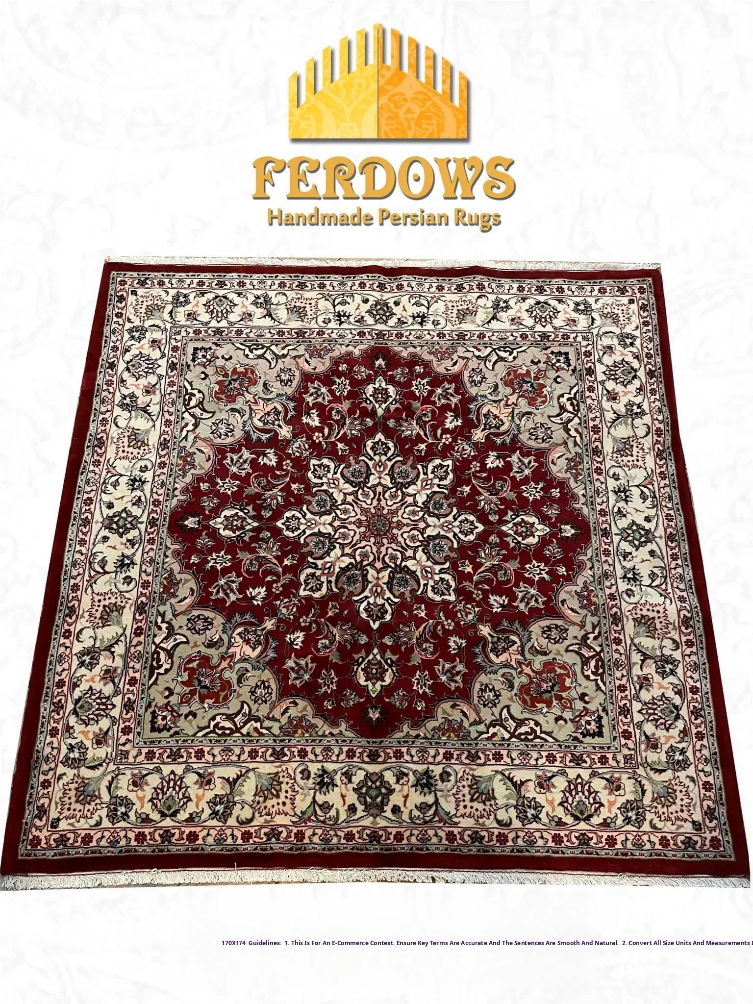 FERDOWS Handcrafted Imported Wool Carpet - Elegant European and American Style for Modern and Classic Living Rooms, Bedrooms, and Studies
