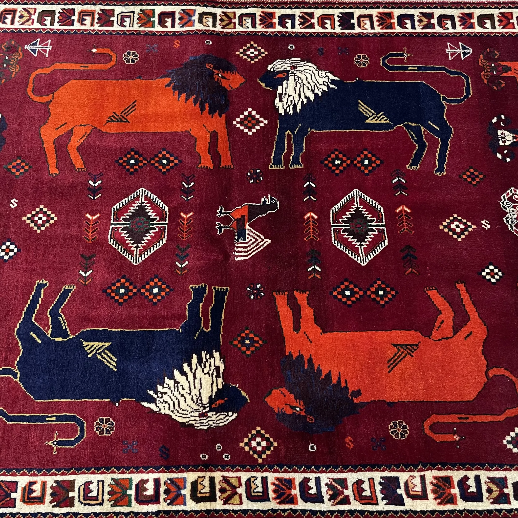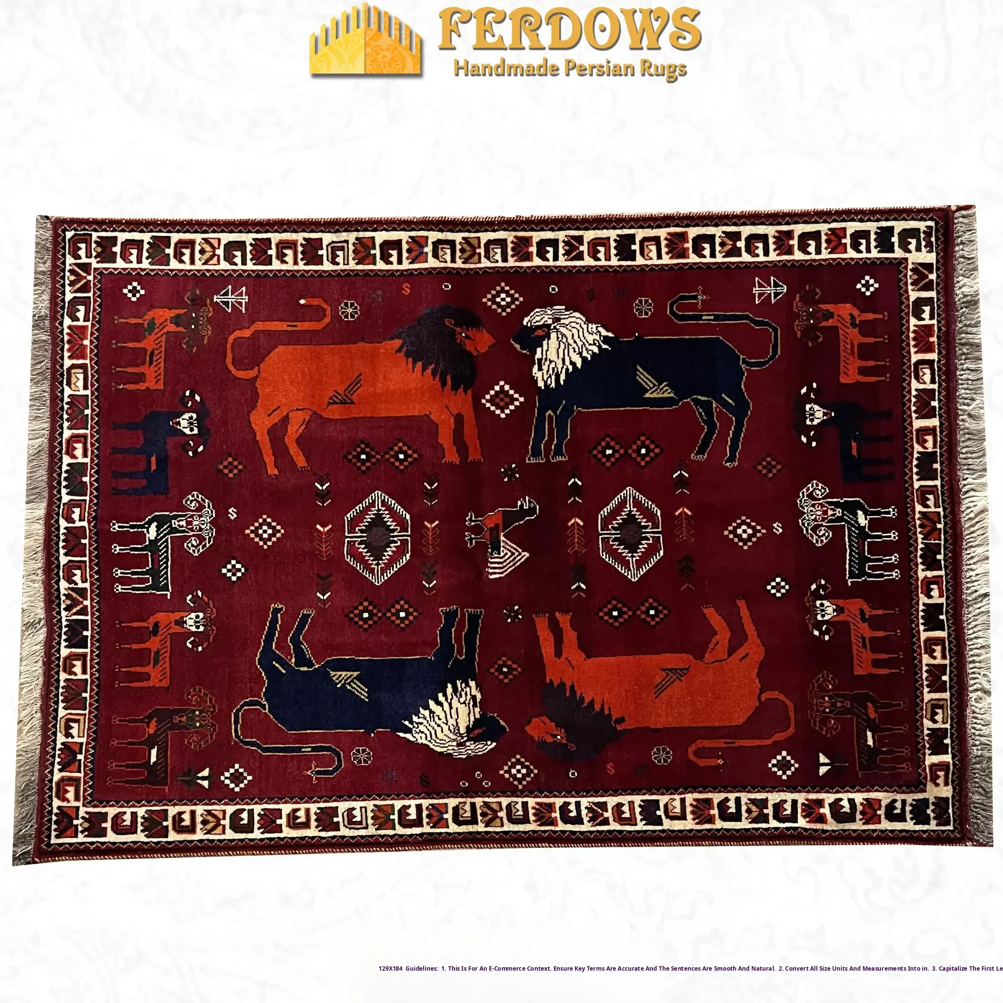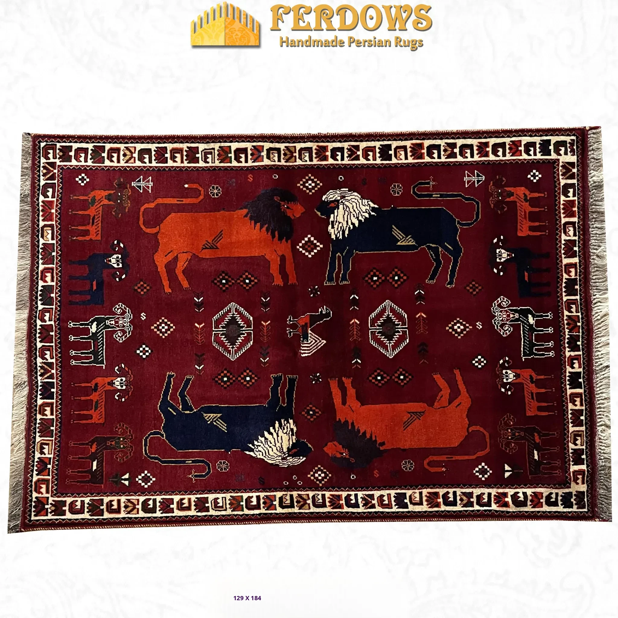 FERDOWS Handcrafted Persian Carpet / Tapestry / Wall Hanging - Pure Wool with Lion and Goat Motifs, Embracing Nomadic Aesthetics