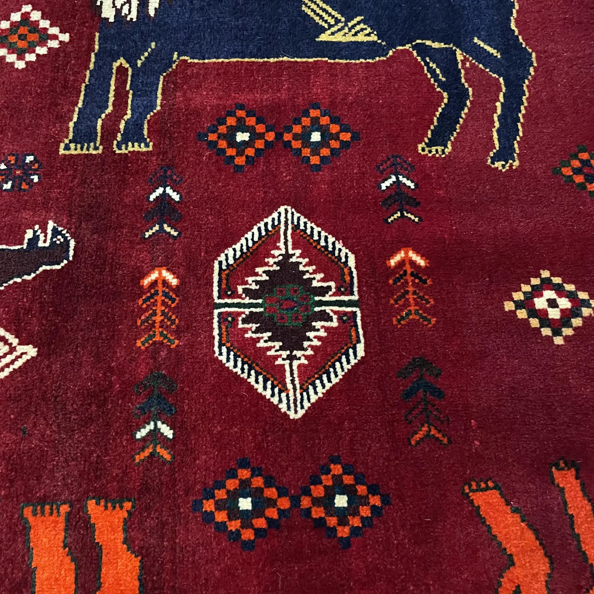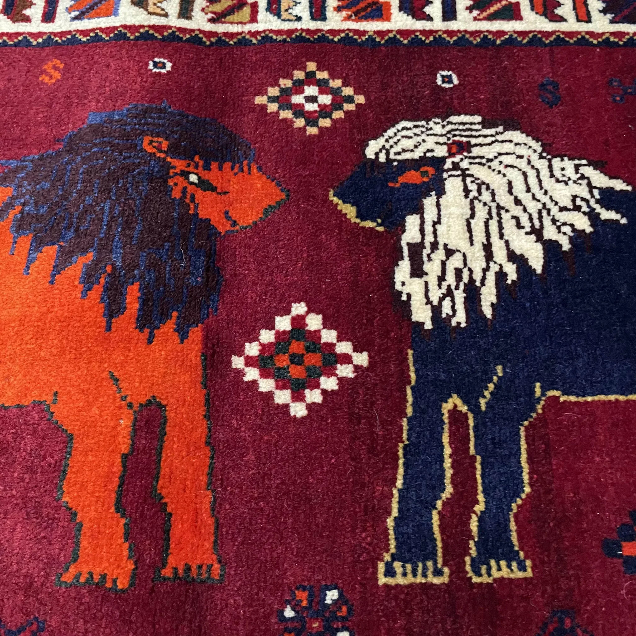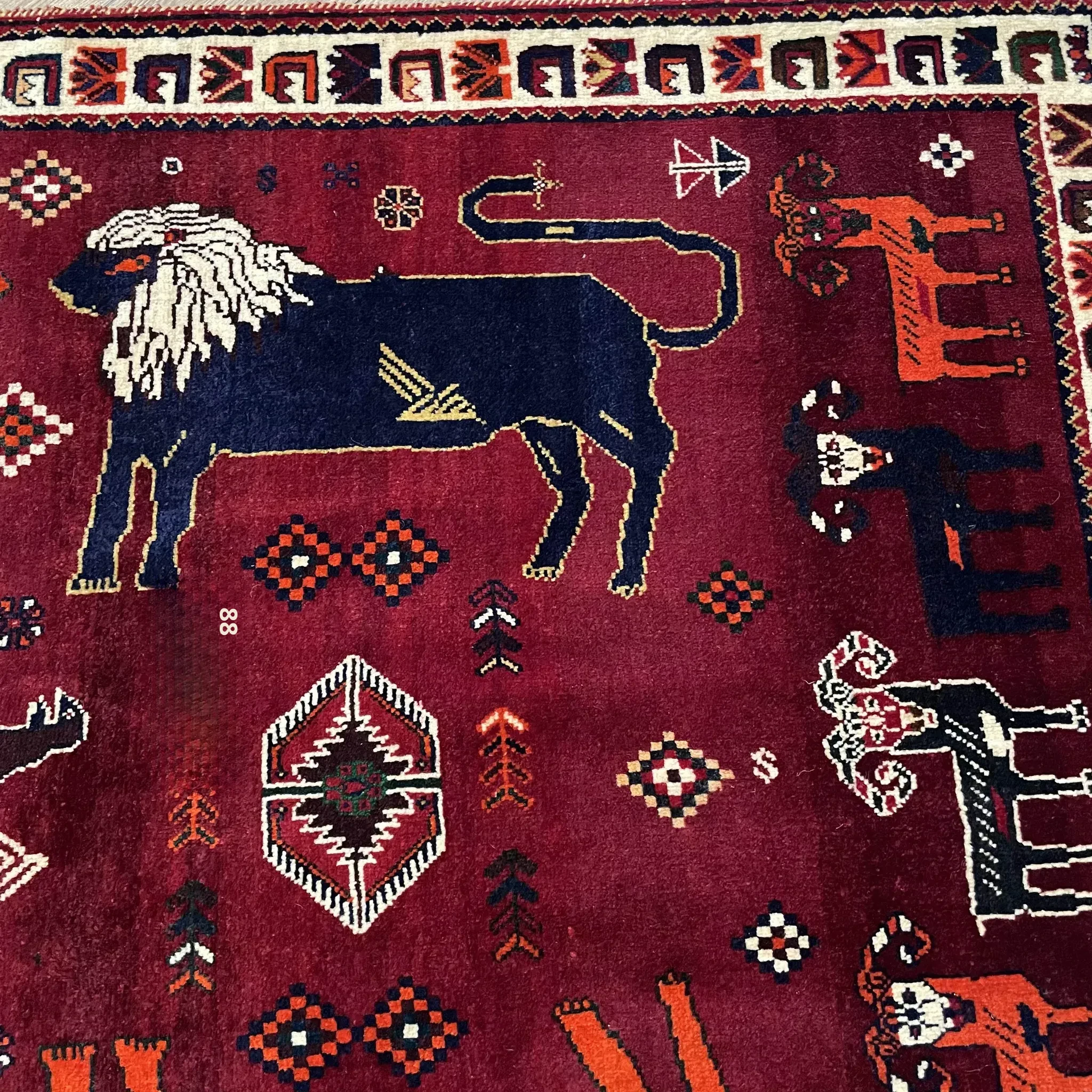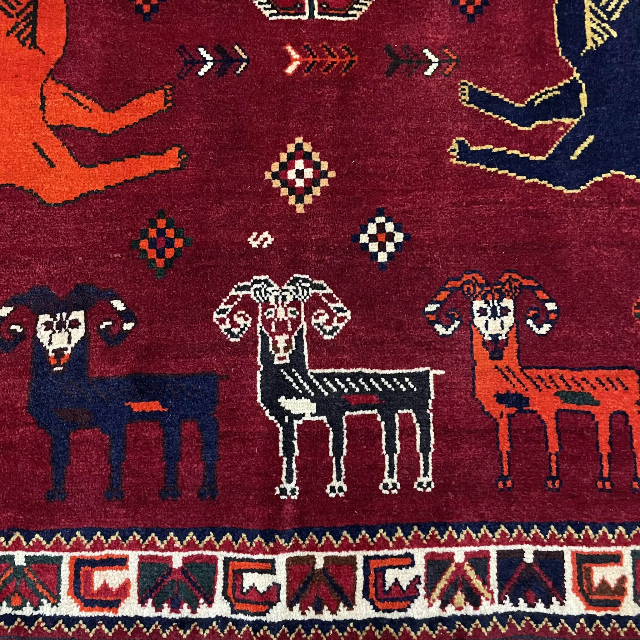 FERDOWS Handcrafted Persian Carpet / Tapestry / Wall Hanging - Pure Wool with Lion and Goat Motifs, Embracing Nomadic Aesthetics