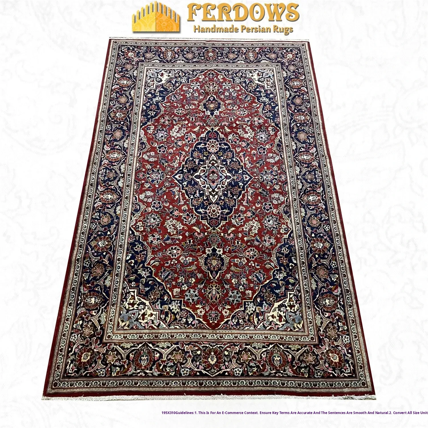 FERDOWS Handcrafted Persian Carpet - Imported Pure Wool, Elegant Red Rug for American and European Style, Perfect for Living Room and Study