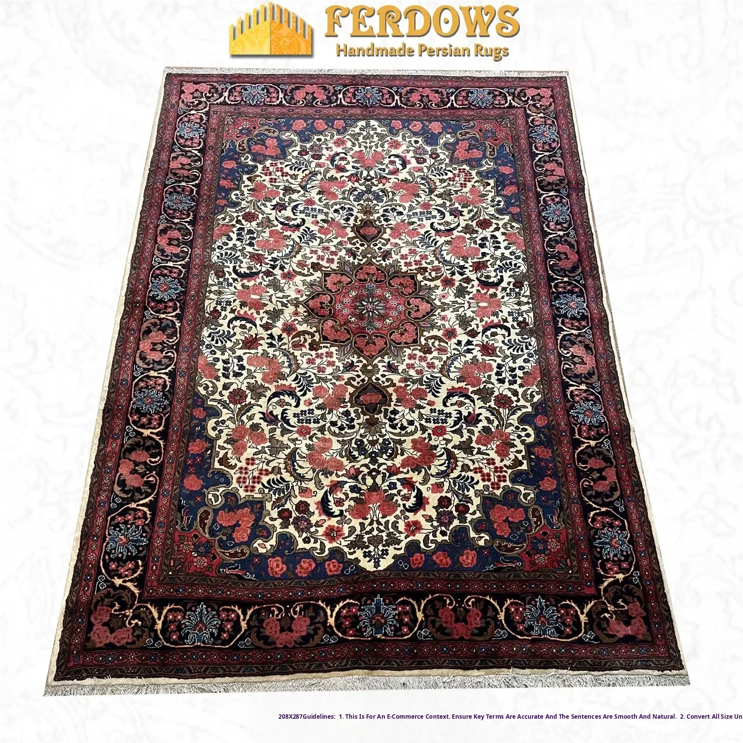 FERDOWS Handcrafted Persian Carpet - Imported Wool, European & American Country Style Floral Design for Living Room and Bedroom