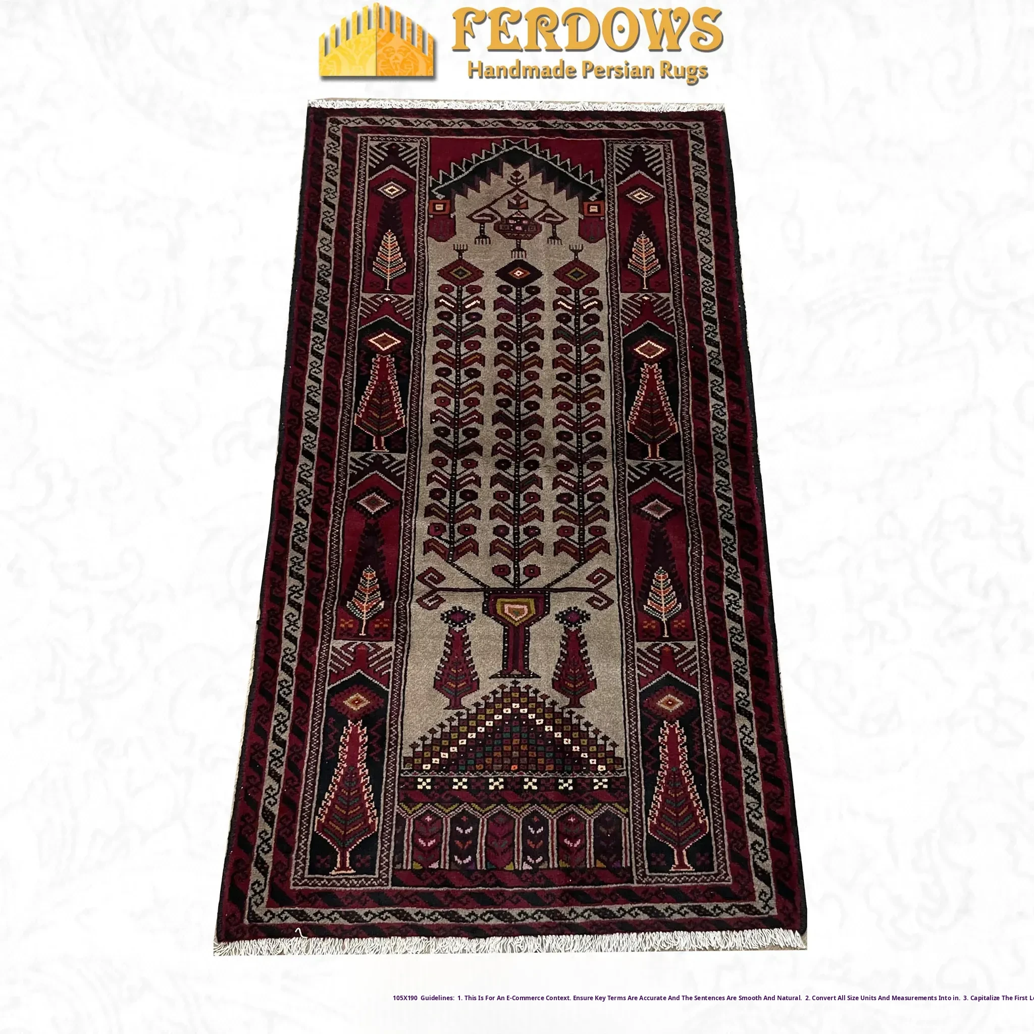 FERDOWS Handcrafted Persian Carpet/Tapestry - Imported Pure Wool, Vintage American, European & Chinese Classical Design