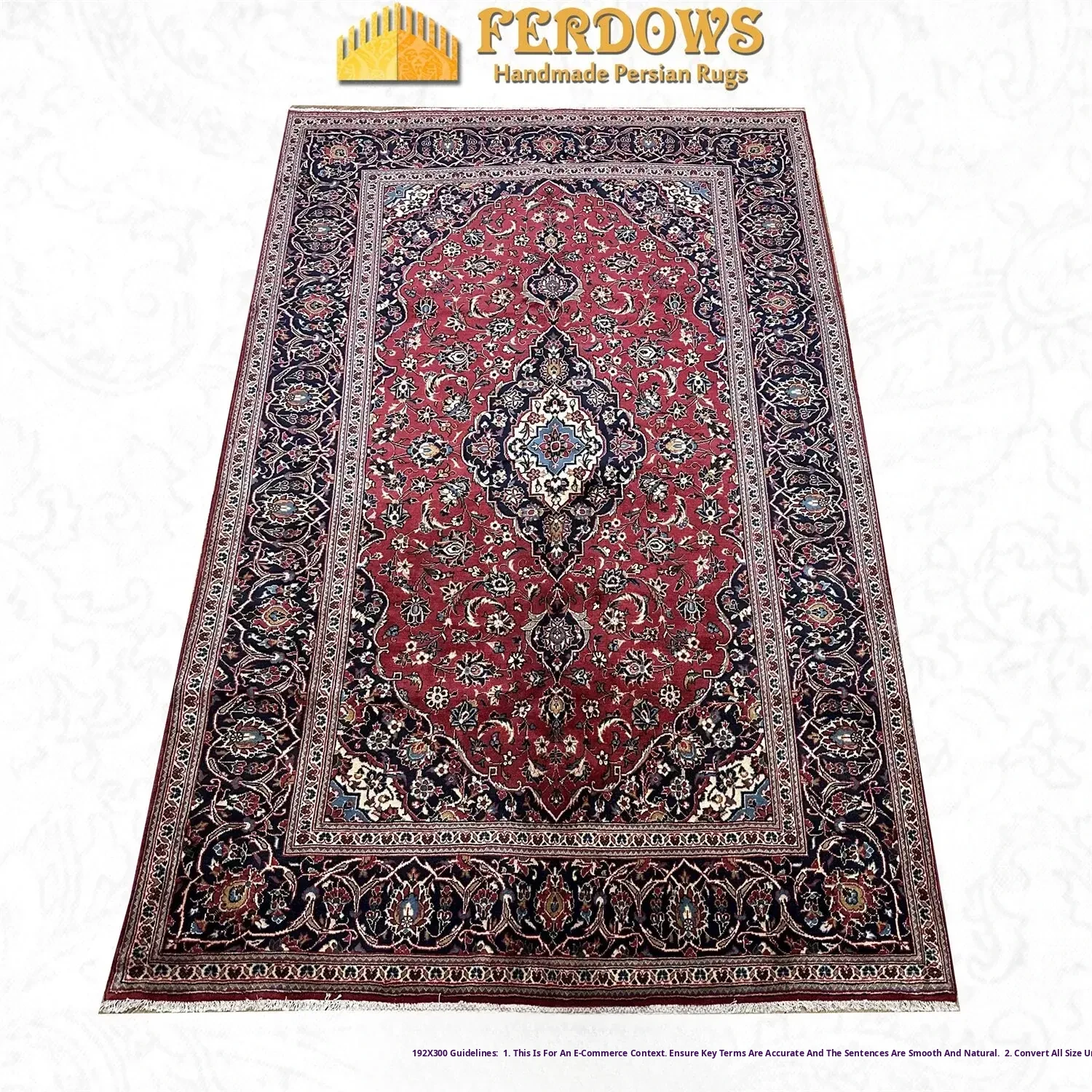 FERDOWS Hand-Knotted Persian Carpet - Authentic Imported Red Pure Wool, Perfect Blend of New Chinese, European, American, and French Styles