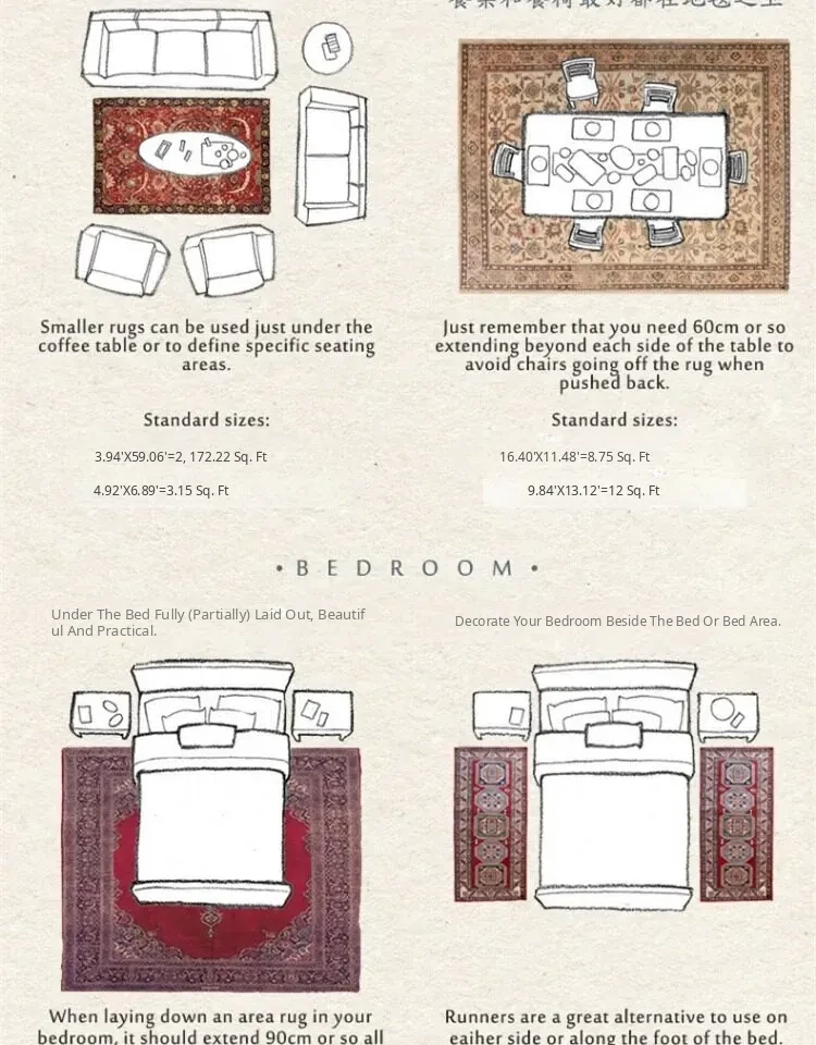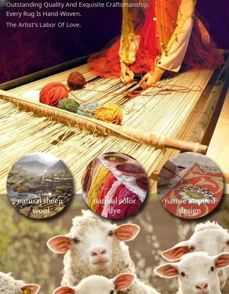 FERDOWS Handmade Imported Wool Carpet - Elegant European & American Style, New Chinese Classic Design for Living Room, Bedroom, and Study Room