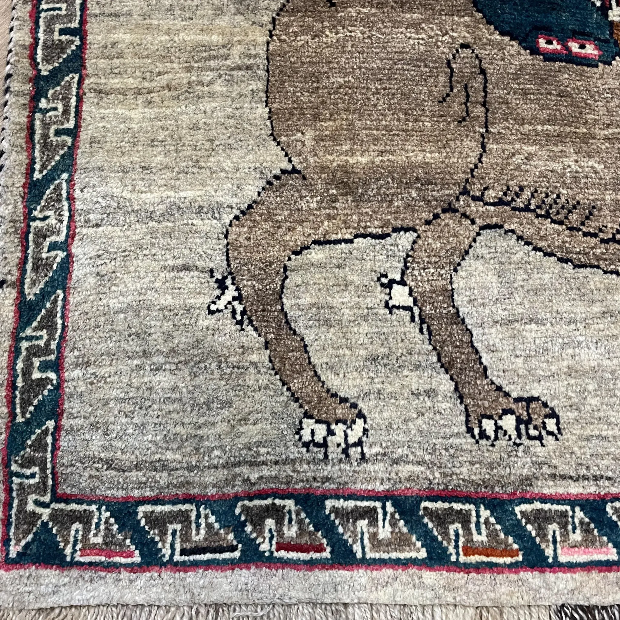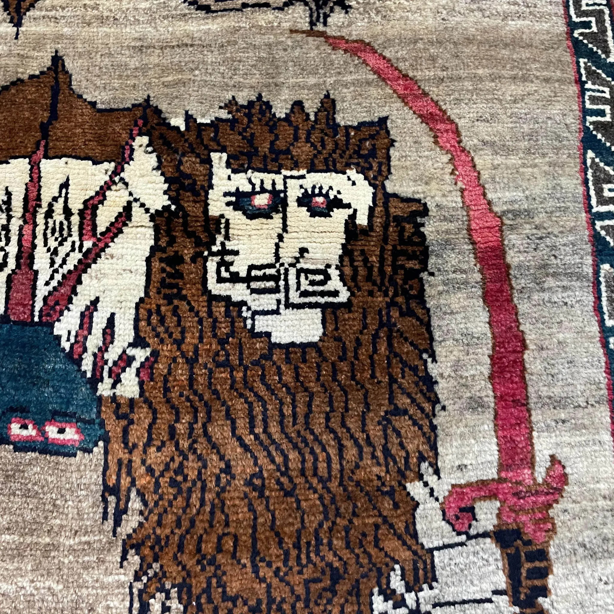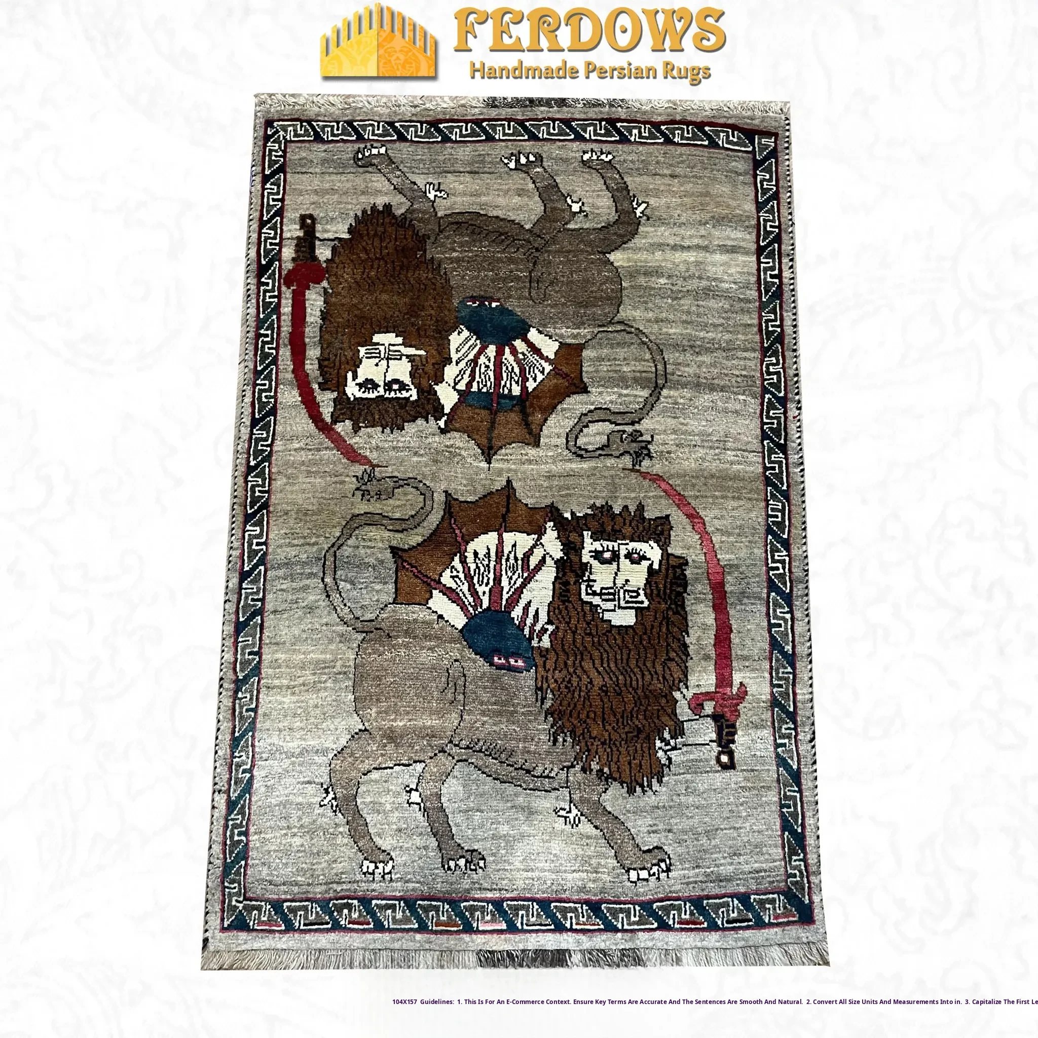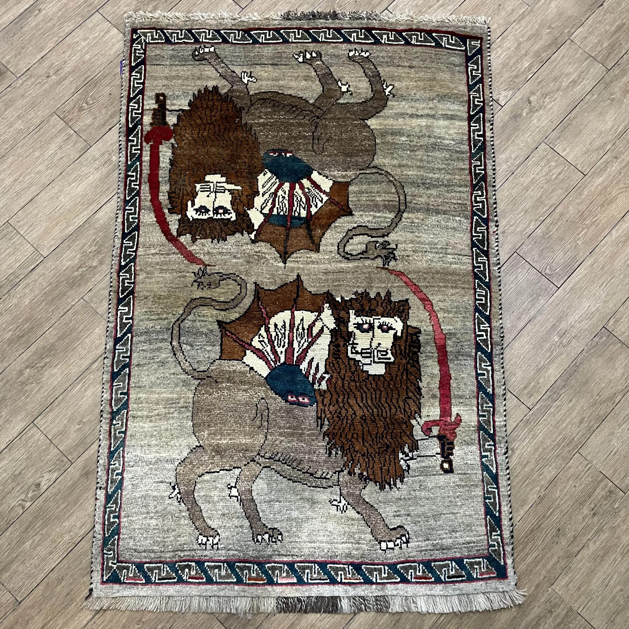 FERDOWS Handmade Persian Carpet / Tapestry - Pure Wool Lion Design, Vintage Nomadic Style, Hand-Knotted Wall Hanging