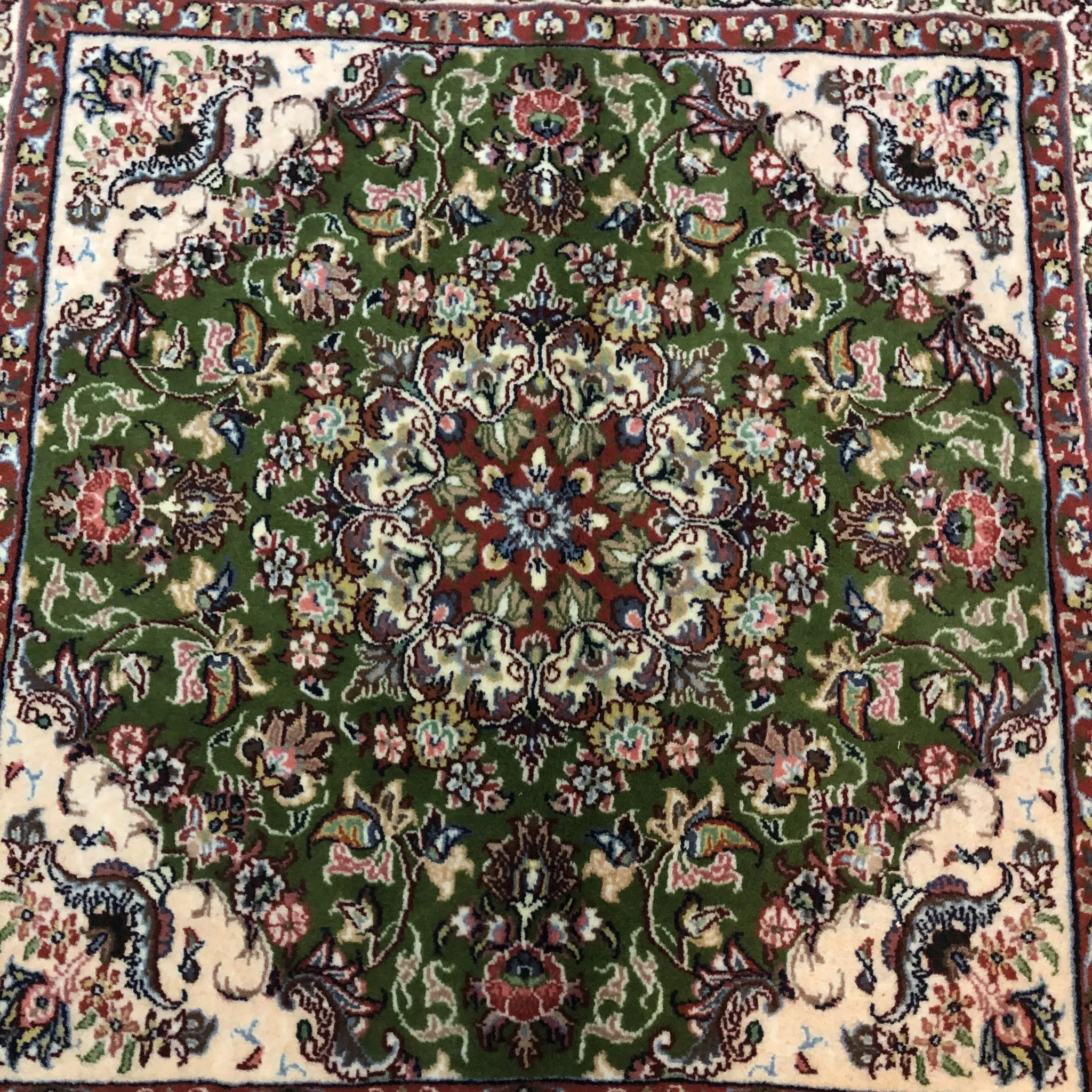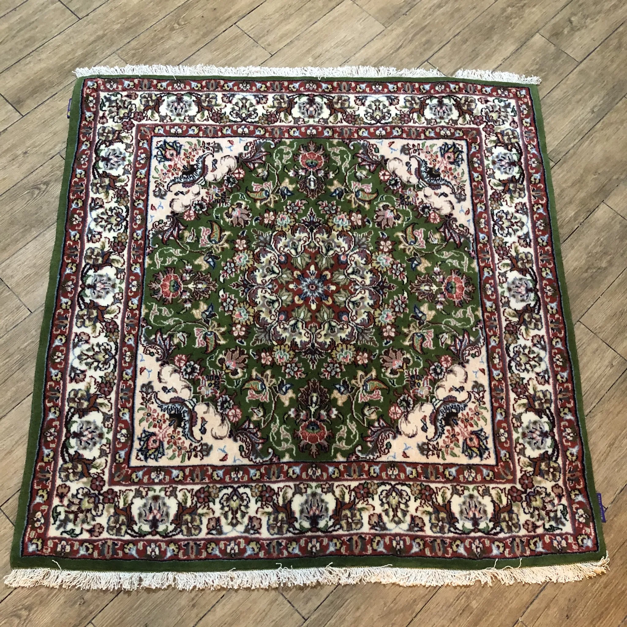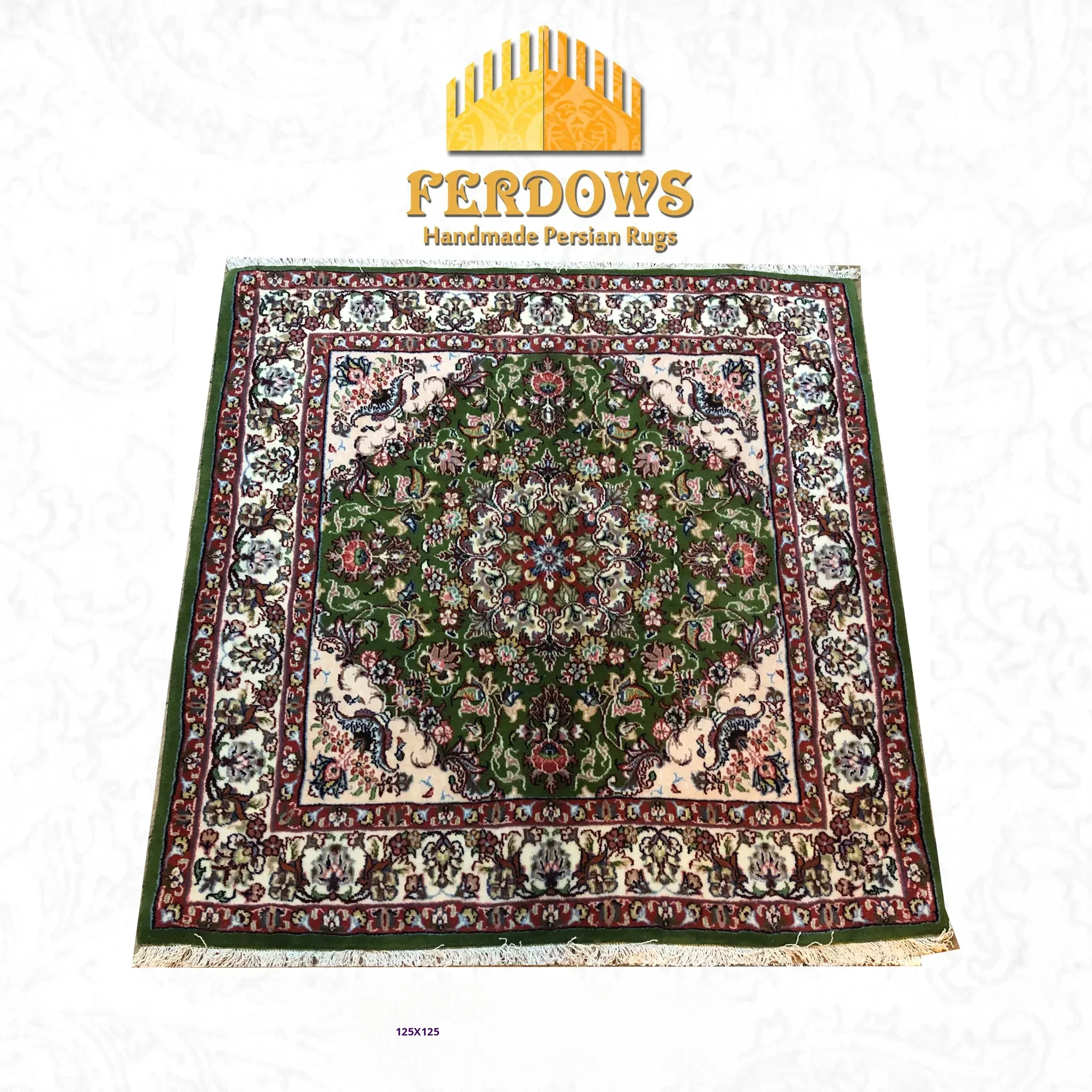 FERDOWS Handmade Persian Wool Carpet - 125x125 cm Green Floral Design for Living Room - Elegant European and American Style Home Decor