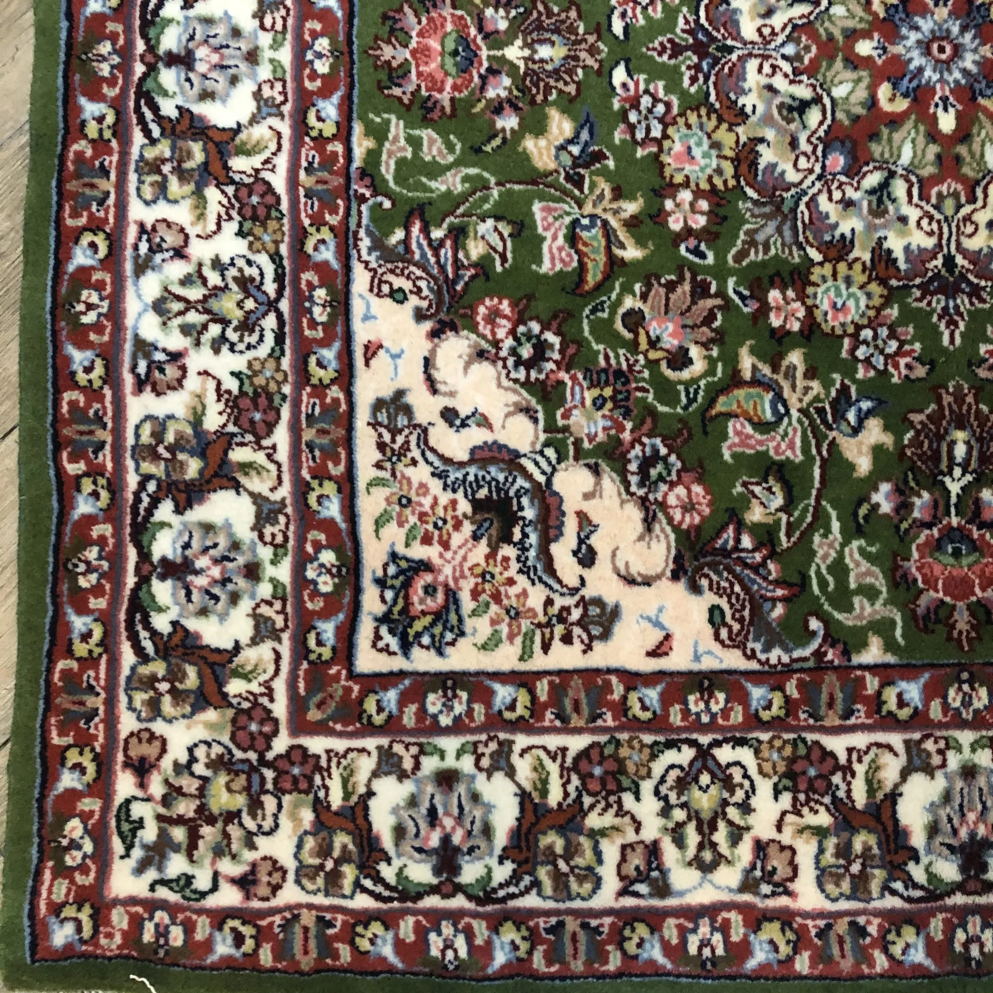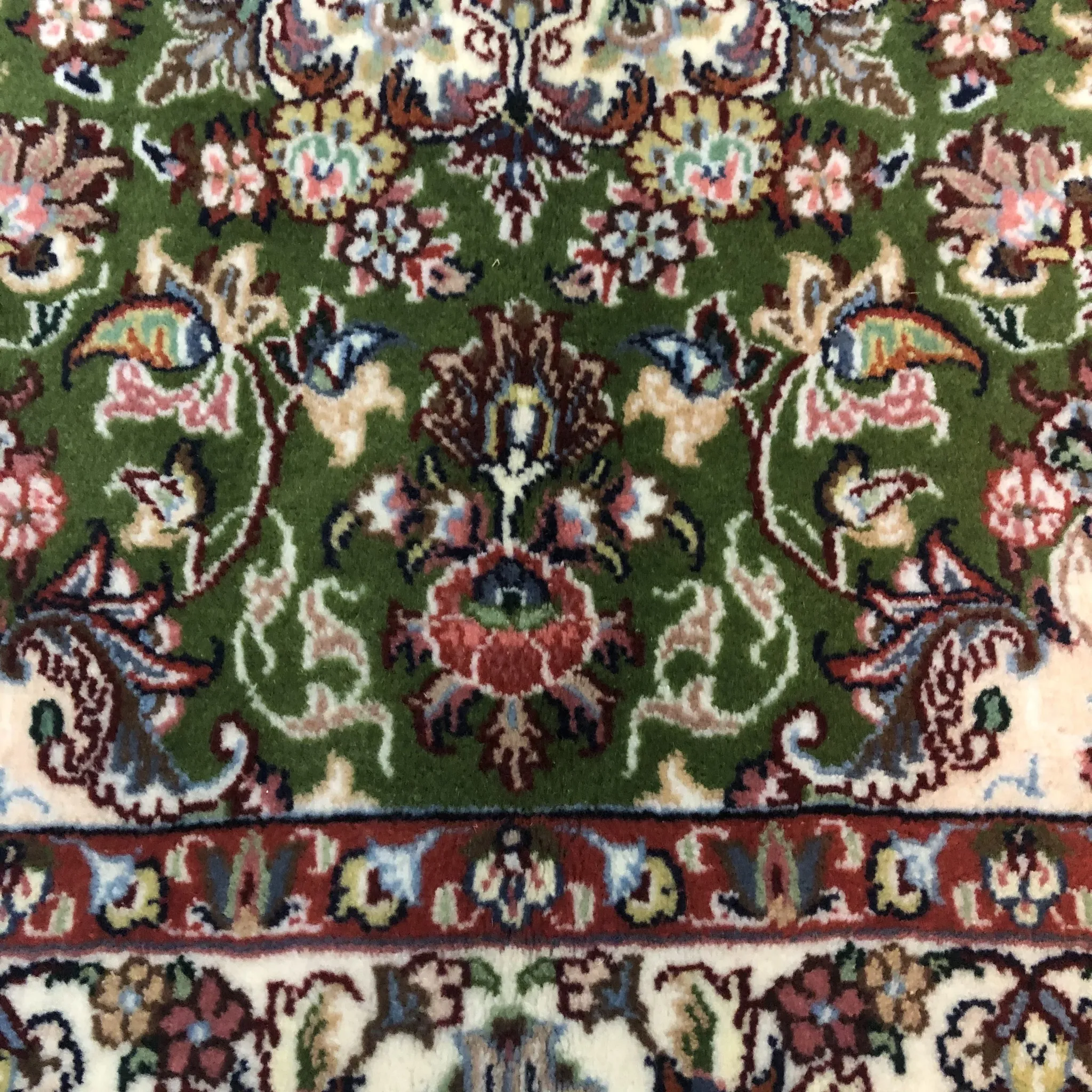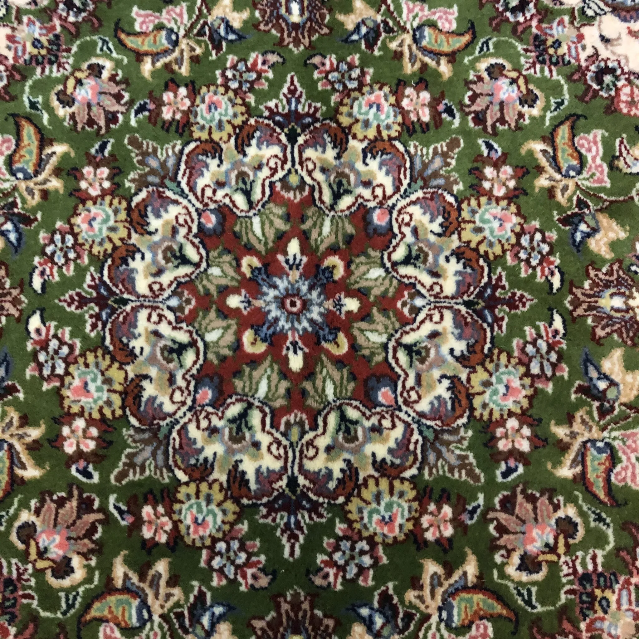 FERDOWS Handmade Persian Wool Carpet - 125x125 cm Green Floral Design for Living Room - Elegant European and American Style Home Decor