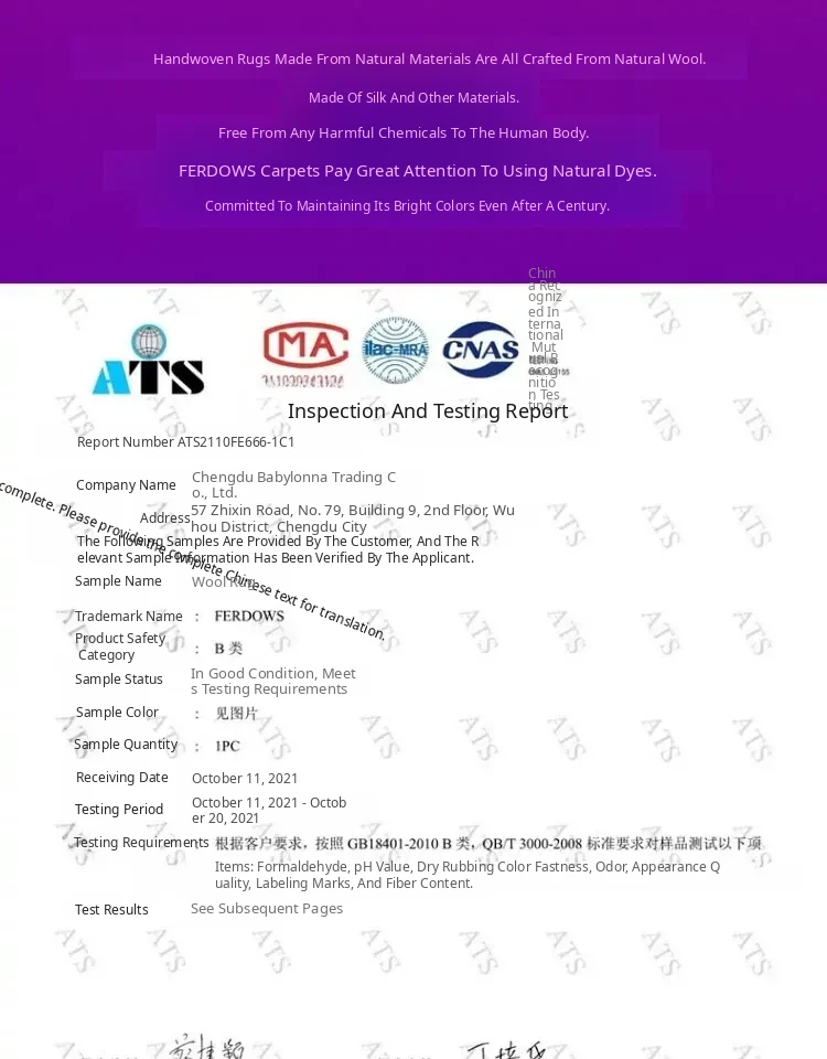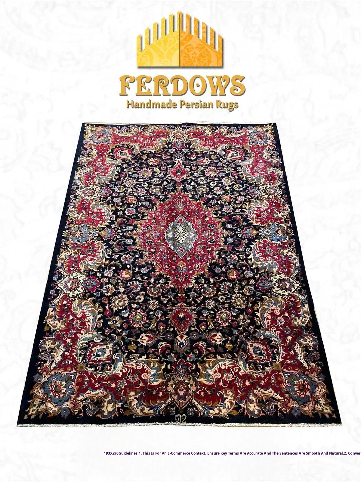 FERDOWS Handwoven Imported Pure Wool Carpet - Designer Signature Rug for European and American Style Living Rooms and Studies
