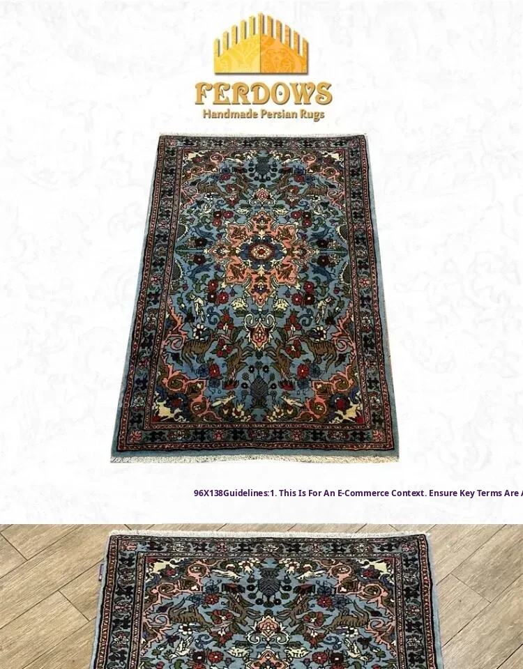 FERDOWS Handwoven Persian Style Carpet - Imported, 100% Pure Wool, Handmade Knotting, Perfect for European and American Country Homes.