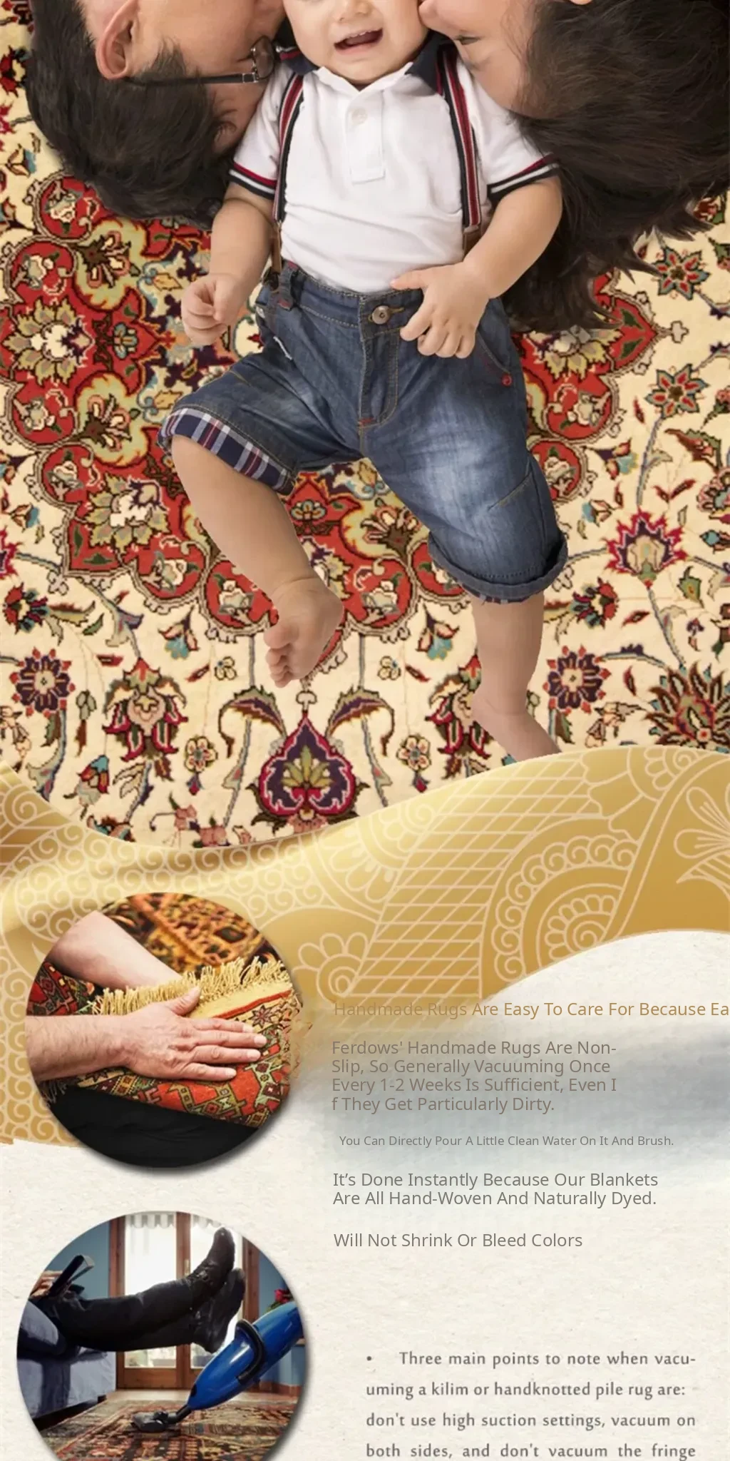 FERDOWS Handwoven Wool Rug - Imported Pure Handmade Door Mat for Entryway, Traditional Chinese & European Style Bedroom Carpet