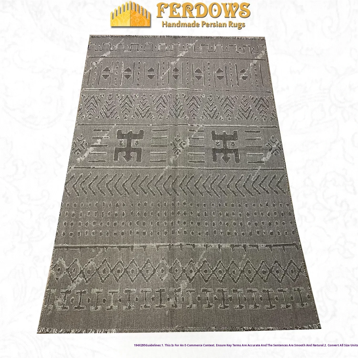 FERDOWS Imported Kilim Rug - Handwoven Pure Wool, Post-Modern Japanese Minimalist Wabi-Sabi Style Rug