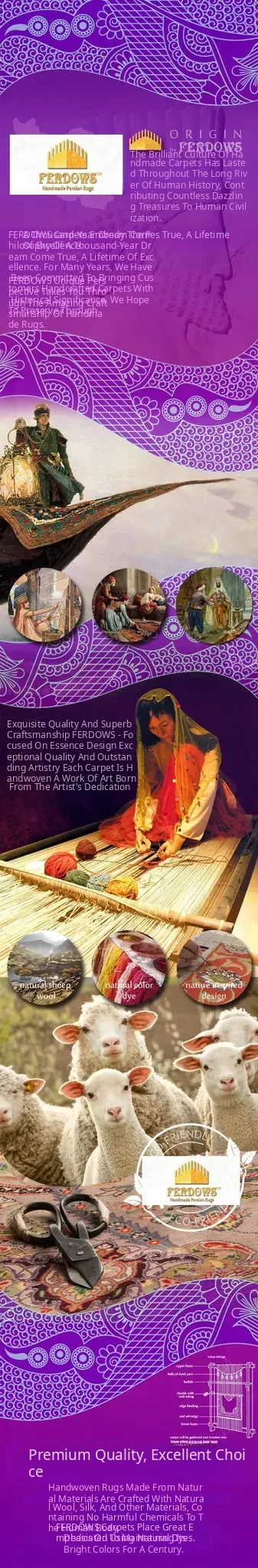 FERDOWS Imported Persian Carpet - Hand-Knotted, 100% Pure Wool, Elegant European, American, and French Style for Modern and Traditional Living Rooms and Bedrooms