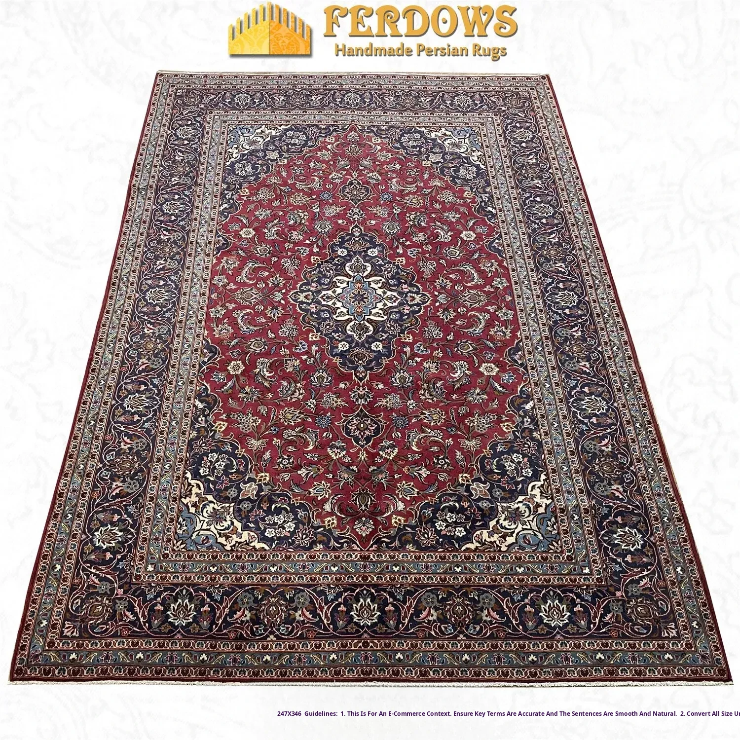 FERDOWS Imported Persian Carpet - Hand-Knotted Pure Wool, Elegant European & French Style, Classic Italian Design, Lightweight Luxury with a Modern Chinese Touch