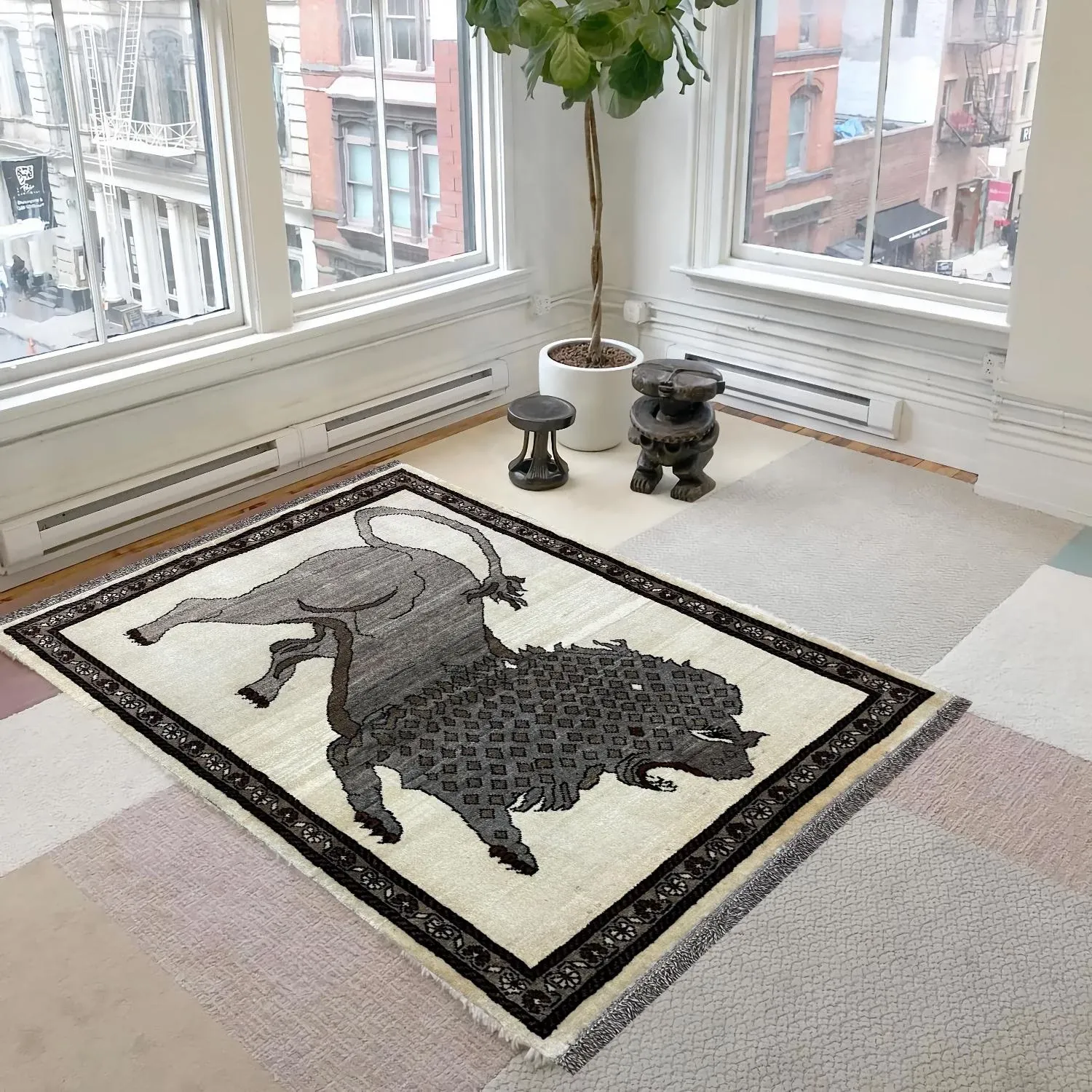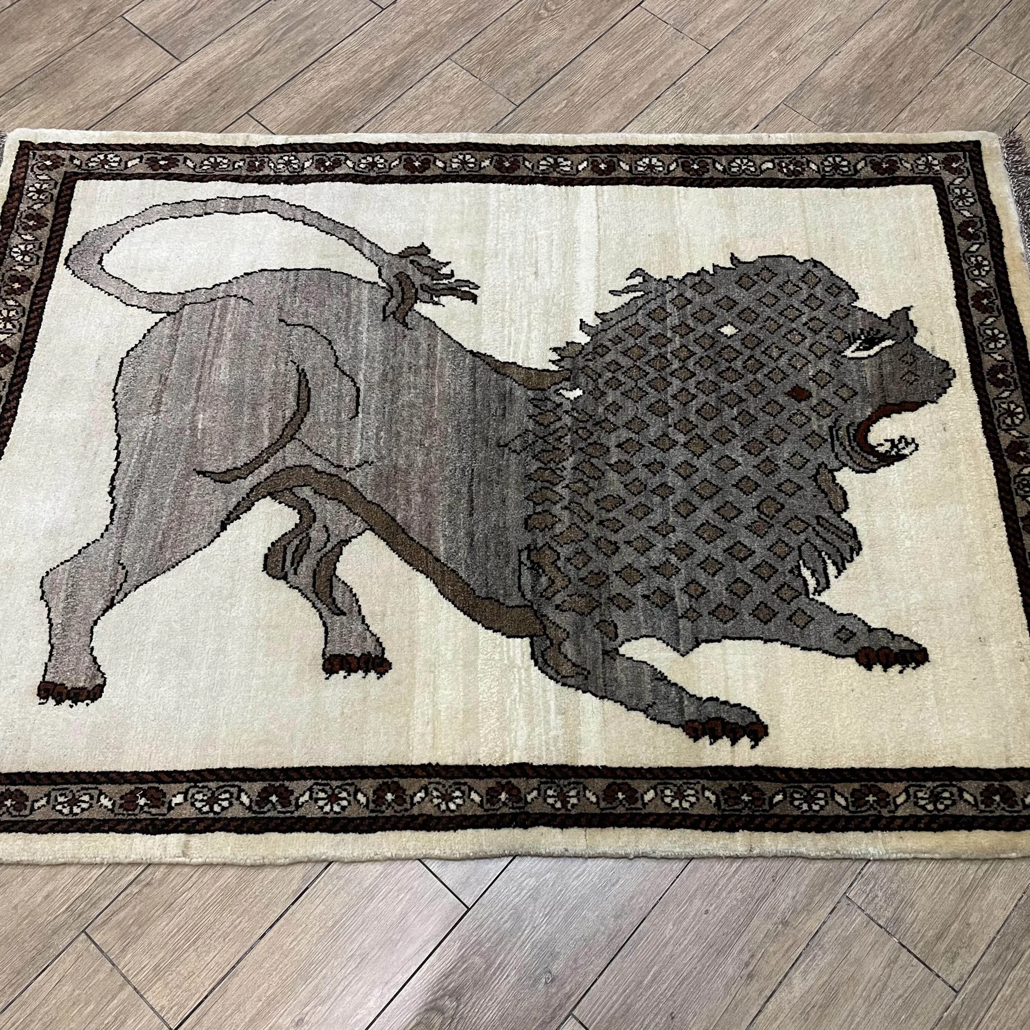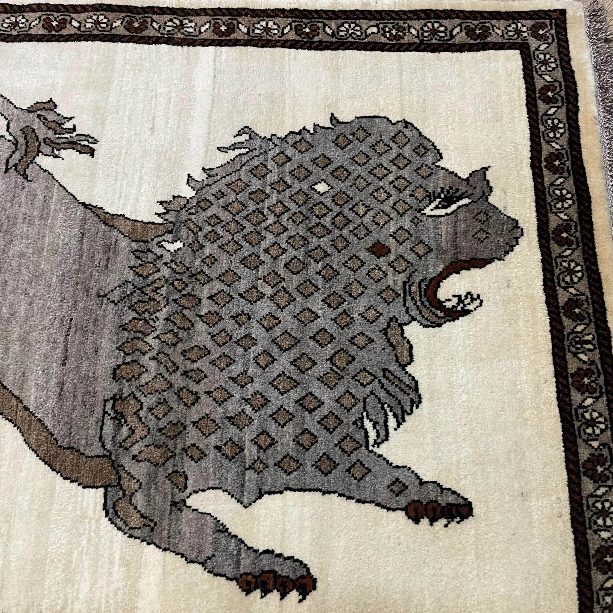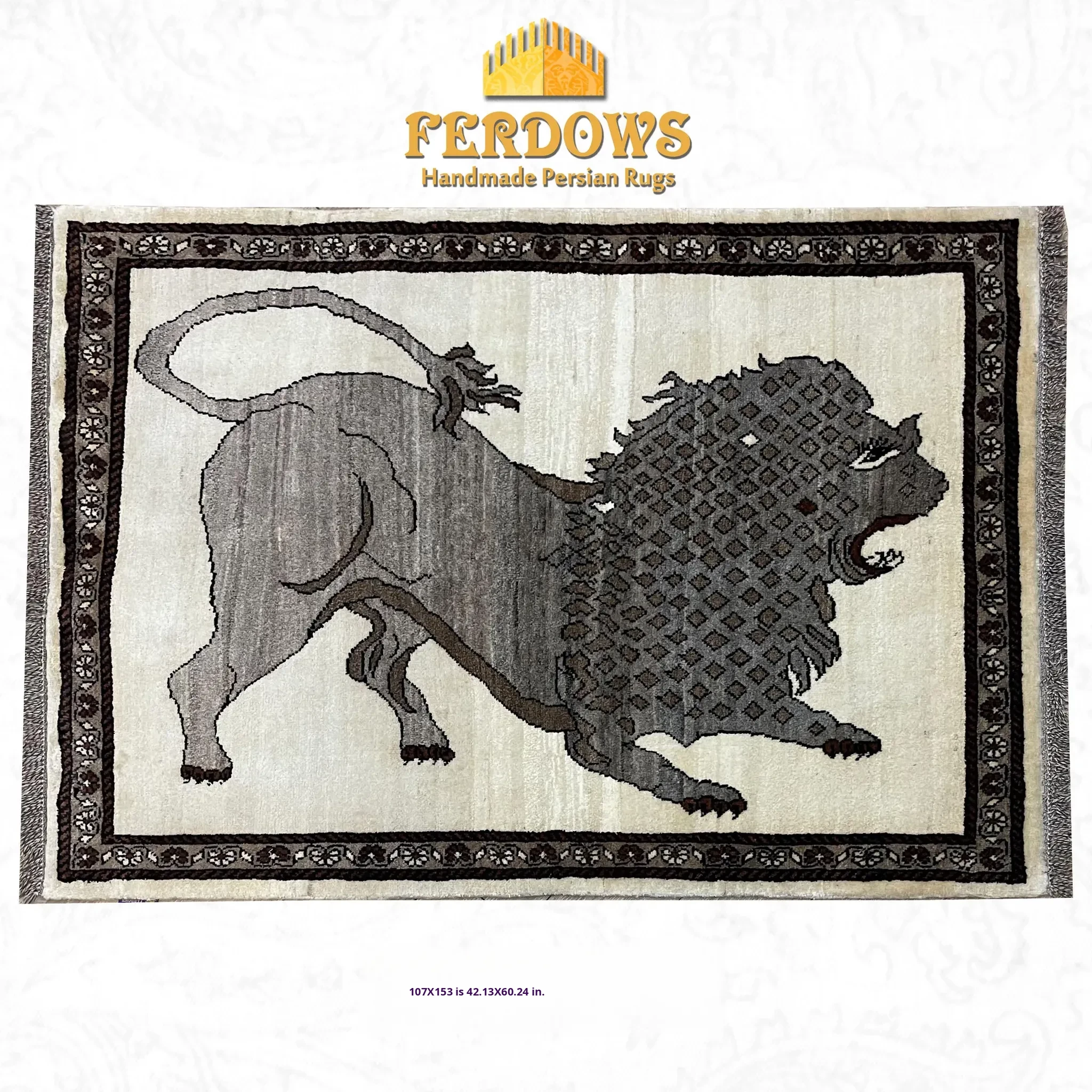 FERDOWS Original Imported Hand-Knotted Pure Wool Modern Nomadic Lion Tapestry - Perfect for Bedroom Décor