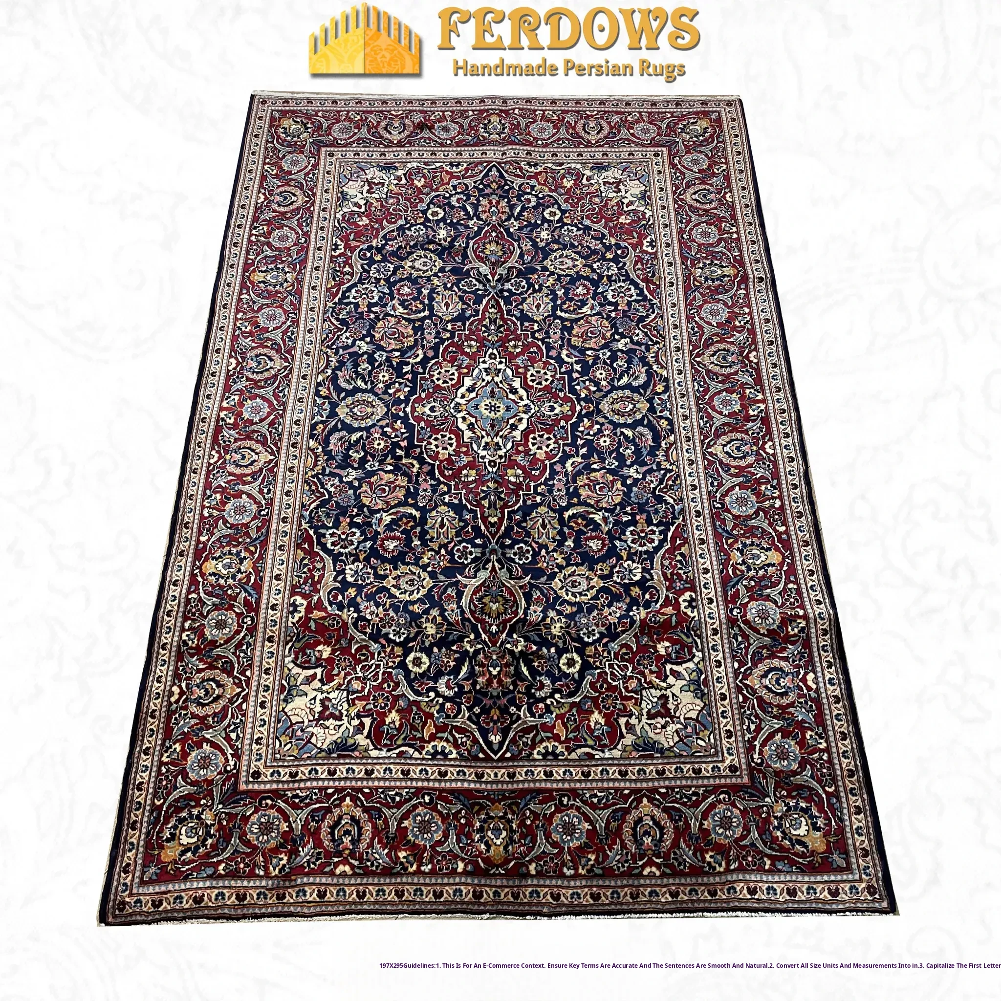 FERDOWS Persian Carpet - Authentic Hand-Knotted, 100% Pure Wool, Exquisite American, European, and French Classical Design - Elevate Your Home Décor with Timeless Elegance!