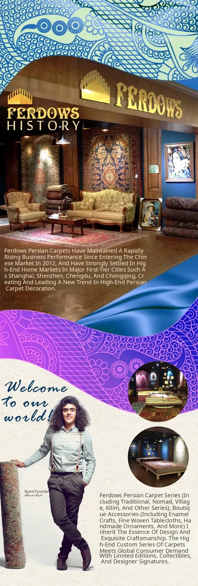 FERDOWS Persian Carpet - Handcrafted Imported Pure Wool Area Rug for Living Room, Bedroom, and Study - American Country & European Style Home Décor