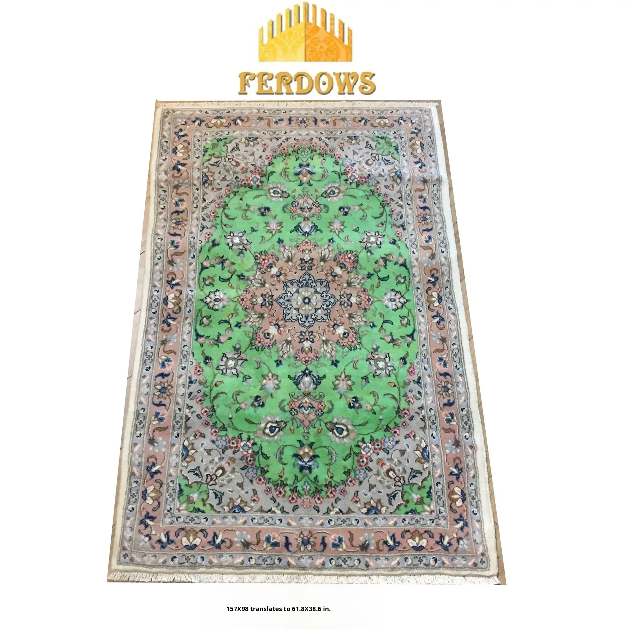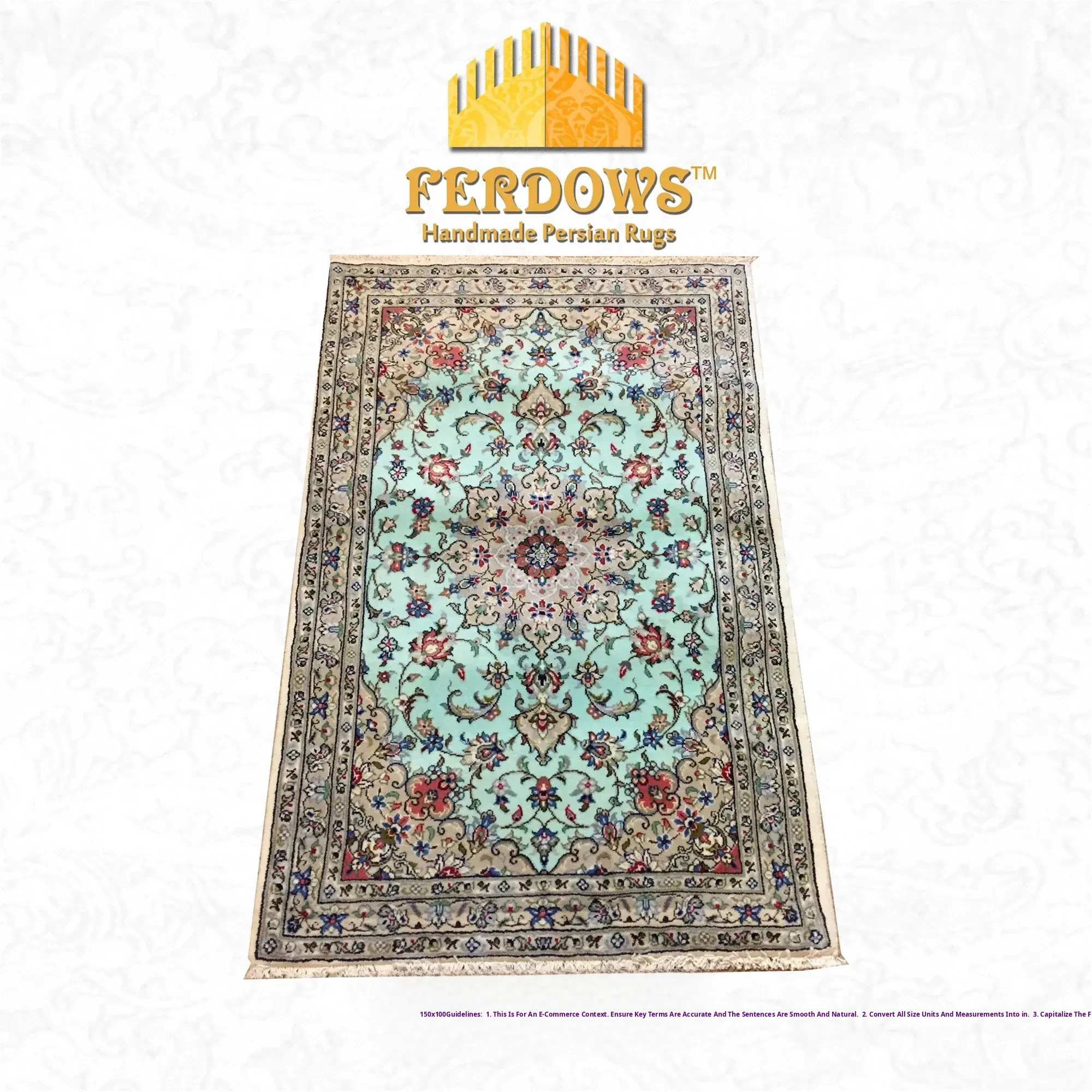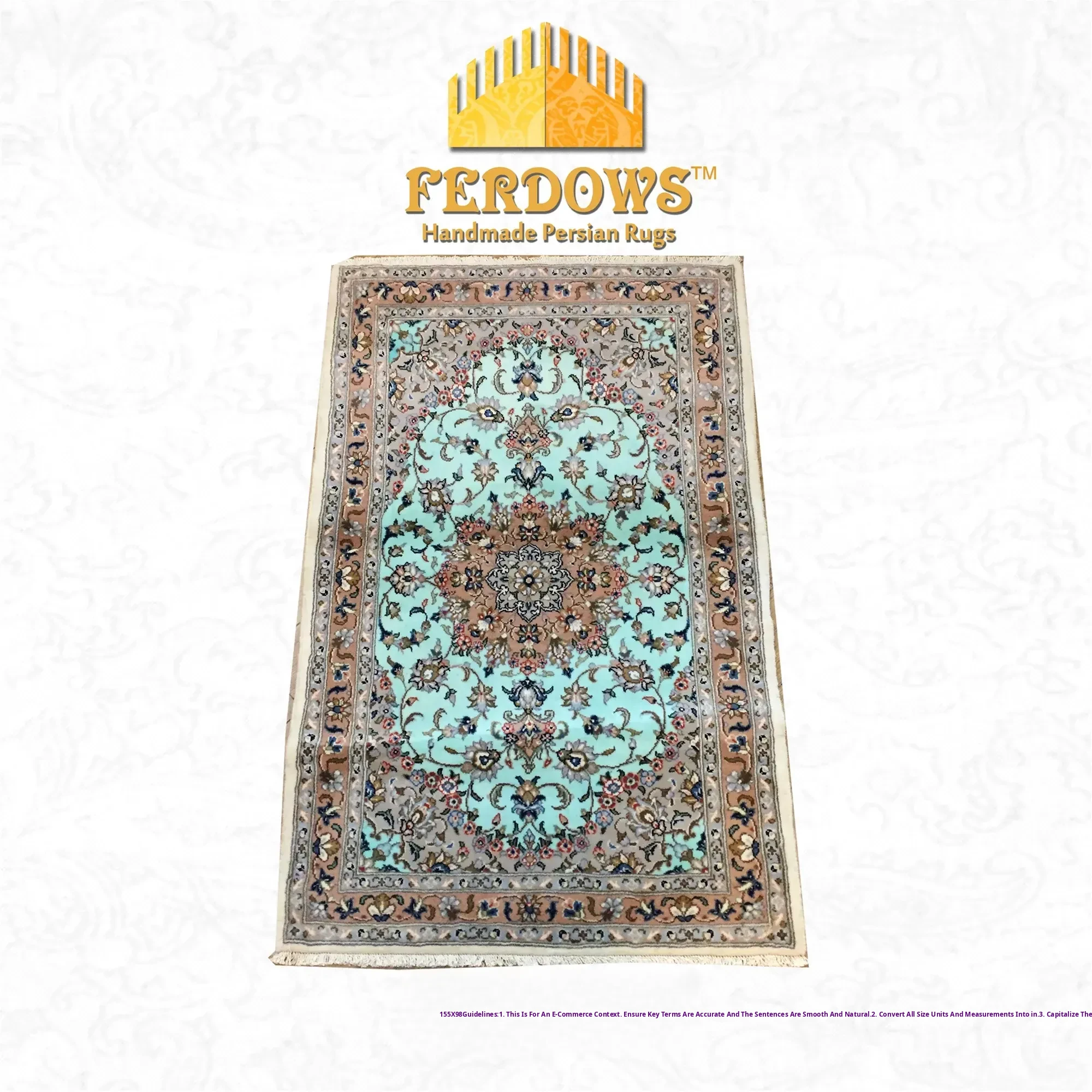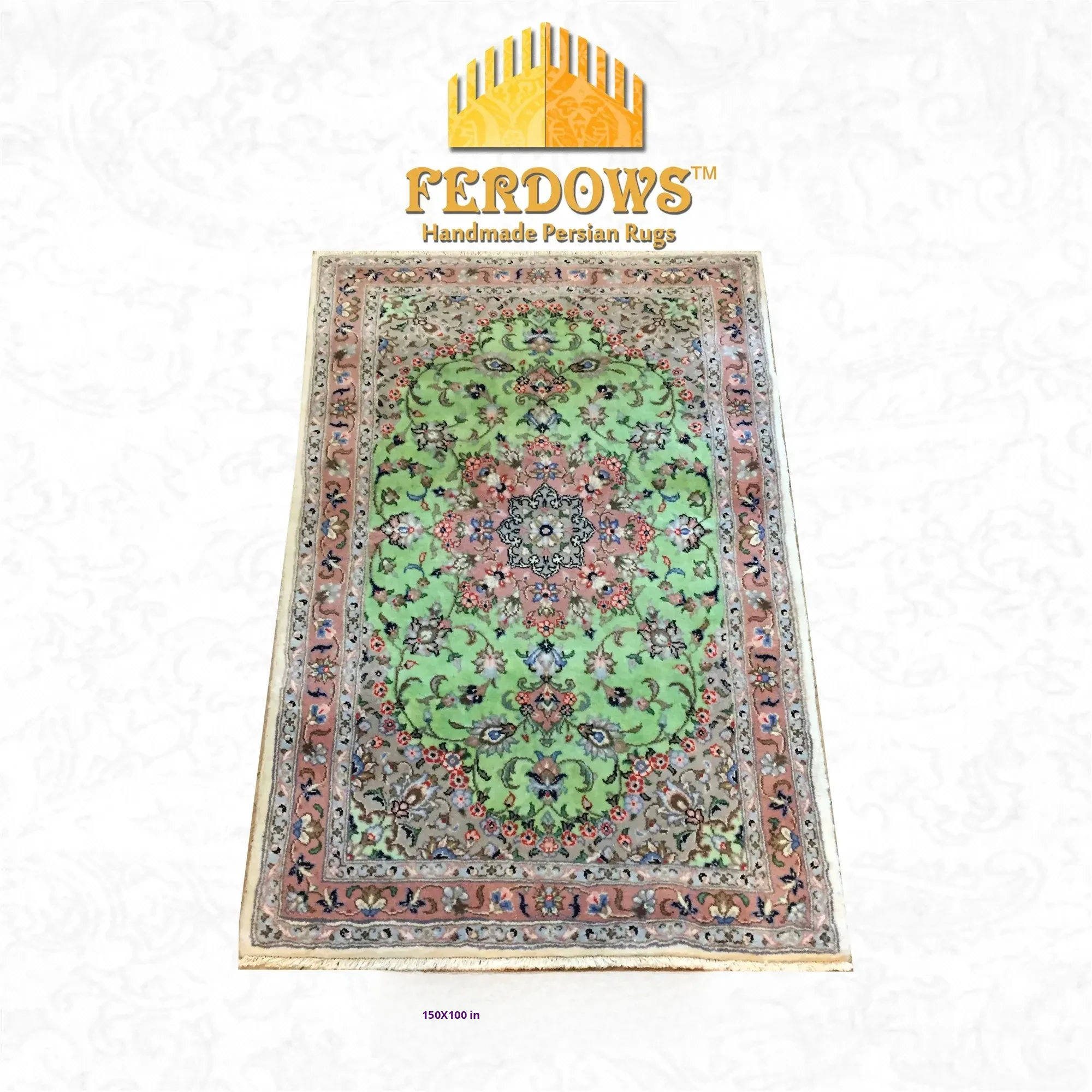 FERDOWS Persian Carpet - Handcrafted Imported Pure Wool in Green and Blue, Perfect for European and American Bedroom Décor, Ideal for Bed End Styling.