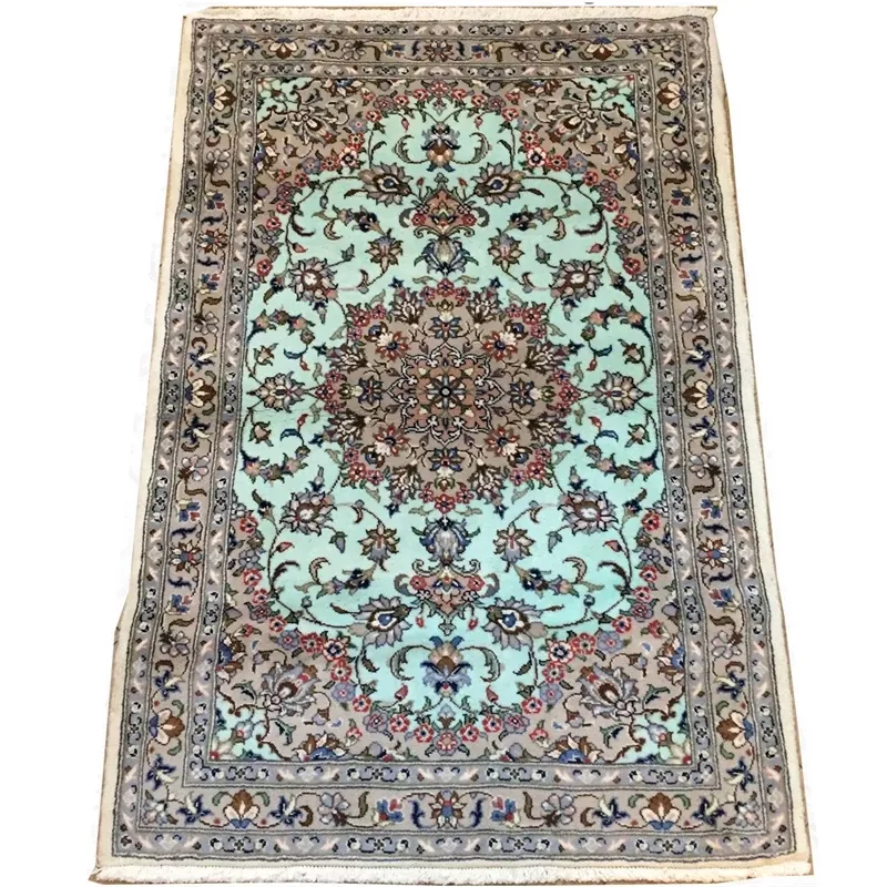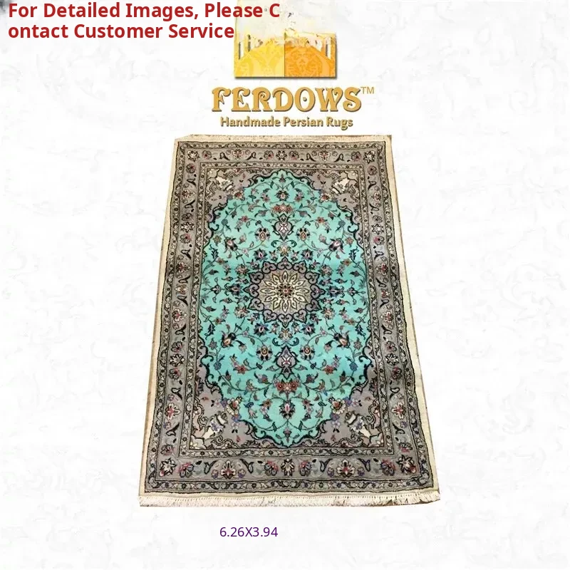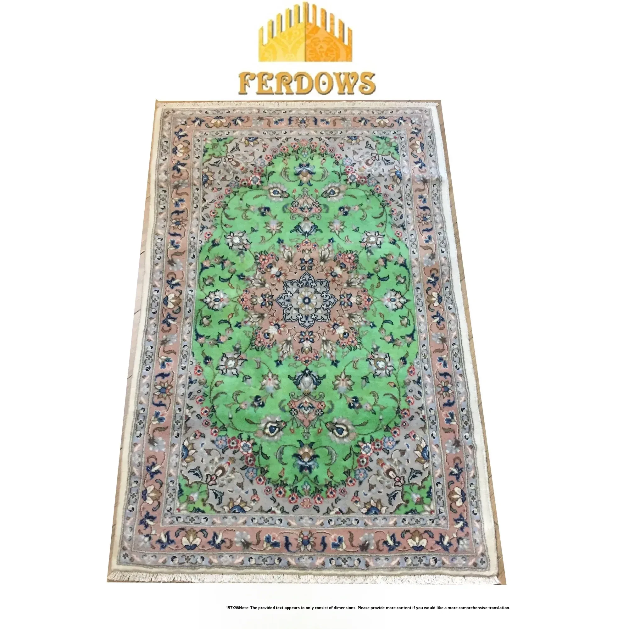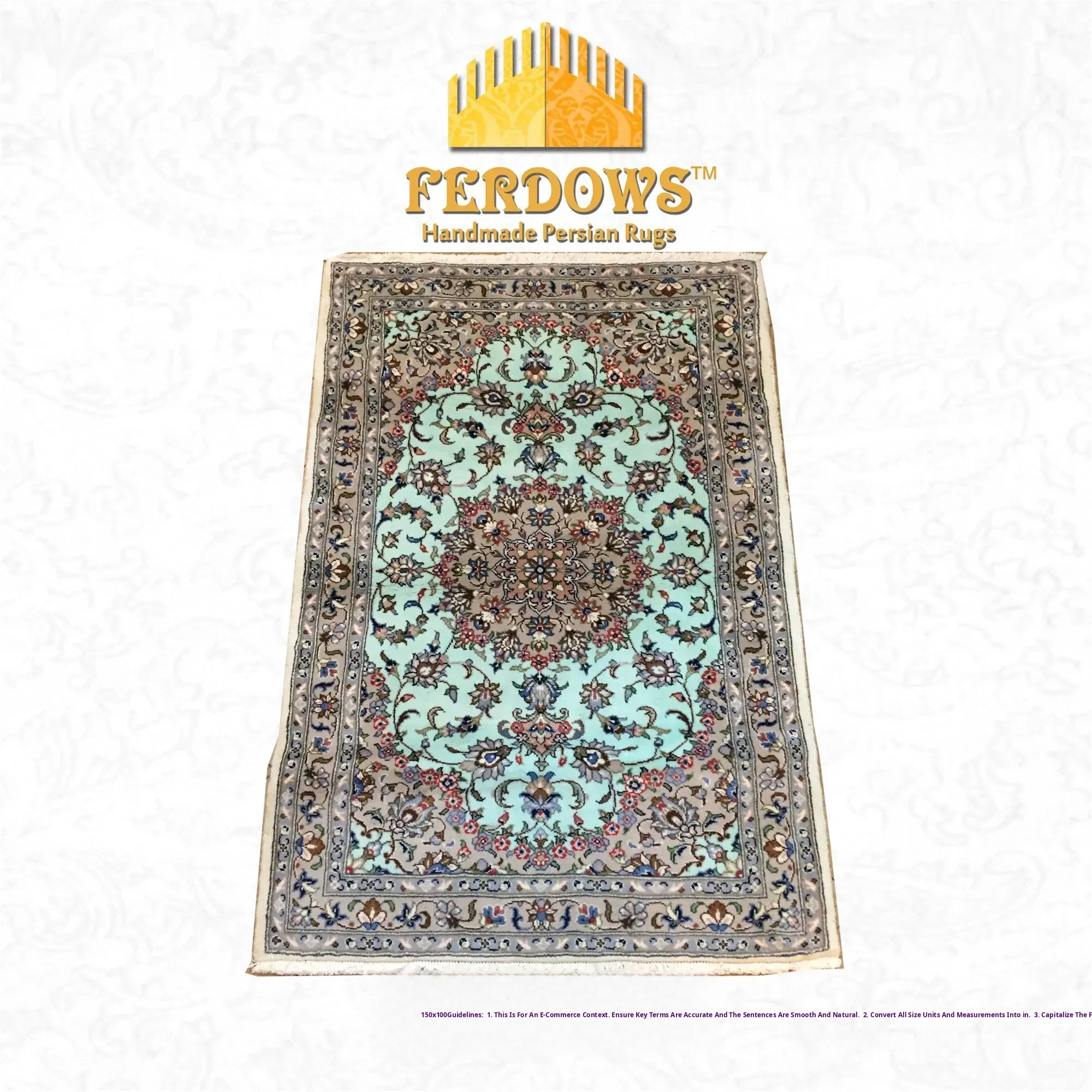 FERDOWS Persian Carpet - Handcrafted Imported Pure Wool in Green and Blue, Perfect for European and American Bedroom Décor, Ideal for Bed End Styling.