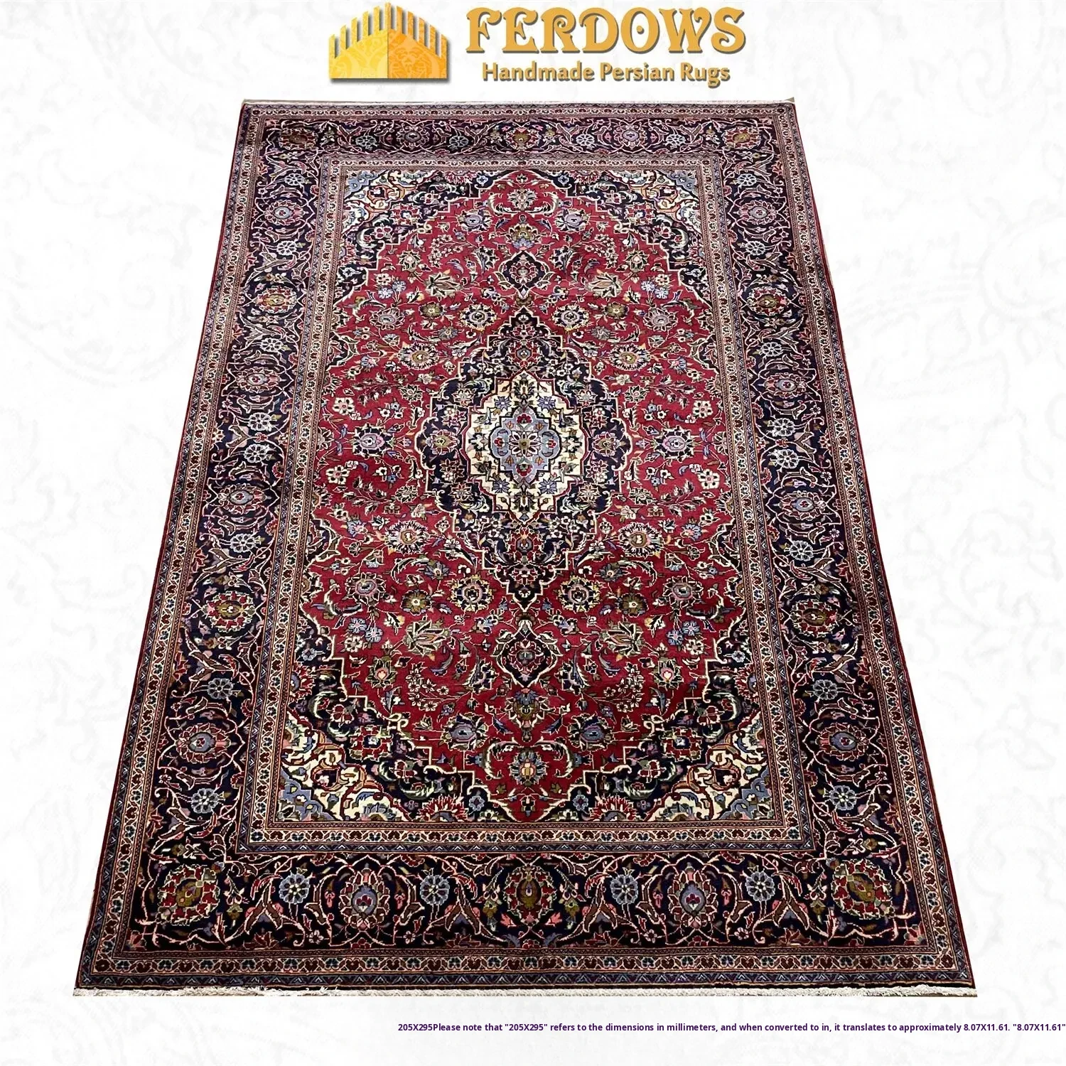 FERDOWS Persian Carpet - Handcrafted Imported Pure Wool Short Pile Rug for Stylish European and American Country Living Room Décor