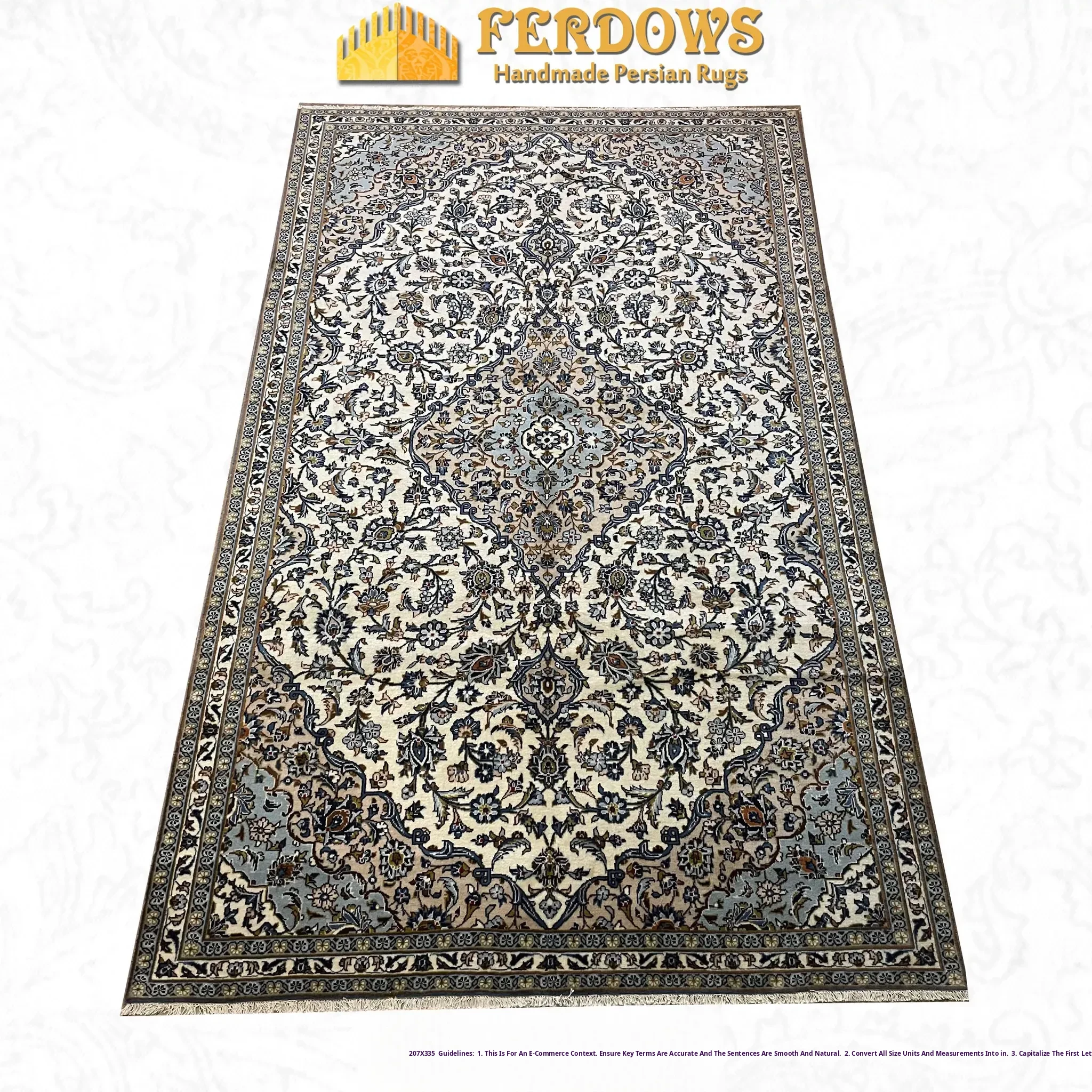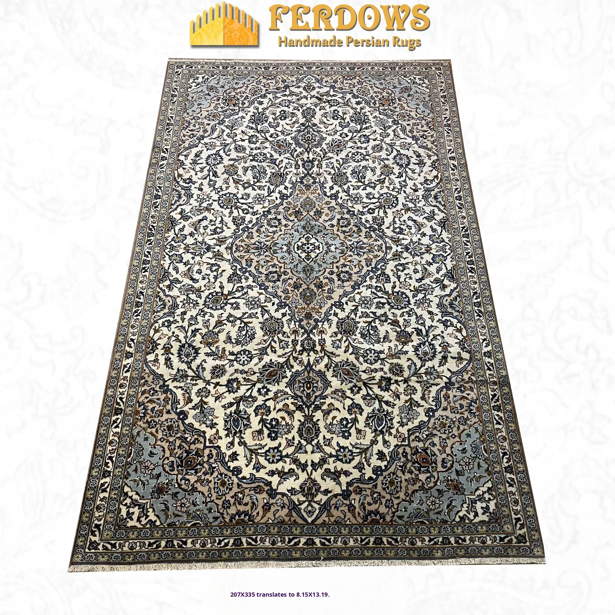 FERDOWS Persian Carpet - Handcrafted with Pure Wool, Original Imported European Style for Elegant Living Room and Bedroom Décor