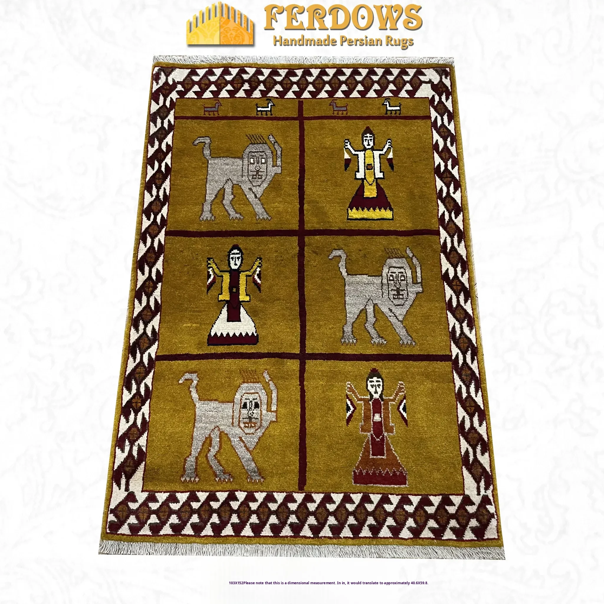 FERDOWS Persian Carpet/Tapestry/Wall Hanging - Authentic Handcrafted Knotted Weave, 100% Pure Wool, Tribal Design - A Luxurious Touch for Your Home Décor