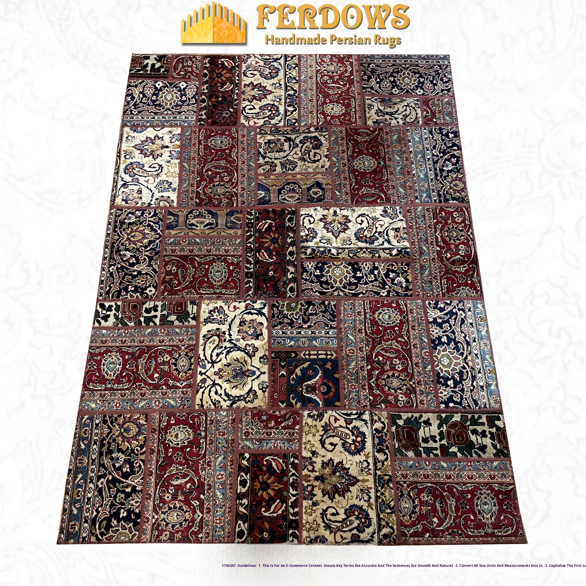 FERDOWS Handwoven Vintage Persian Area Rug - Original Imported Pure Wool Carpet with Unique Patchwork Design, Perfect for Adding Exotic Charm to Your Space!