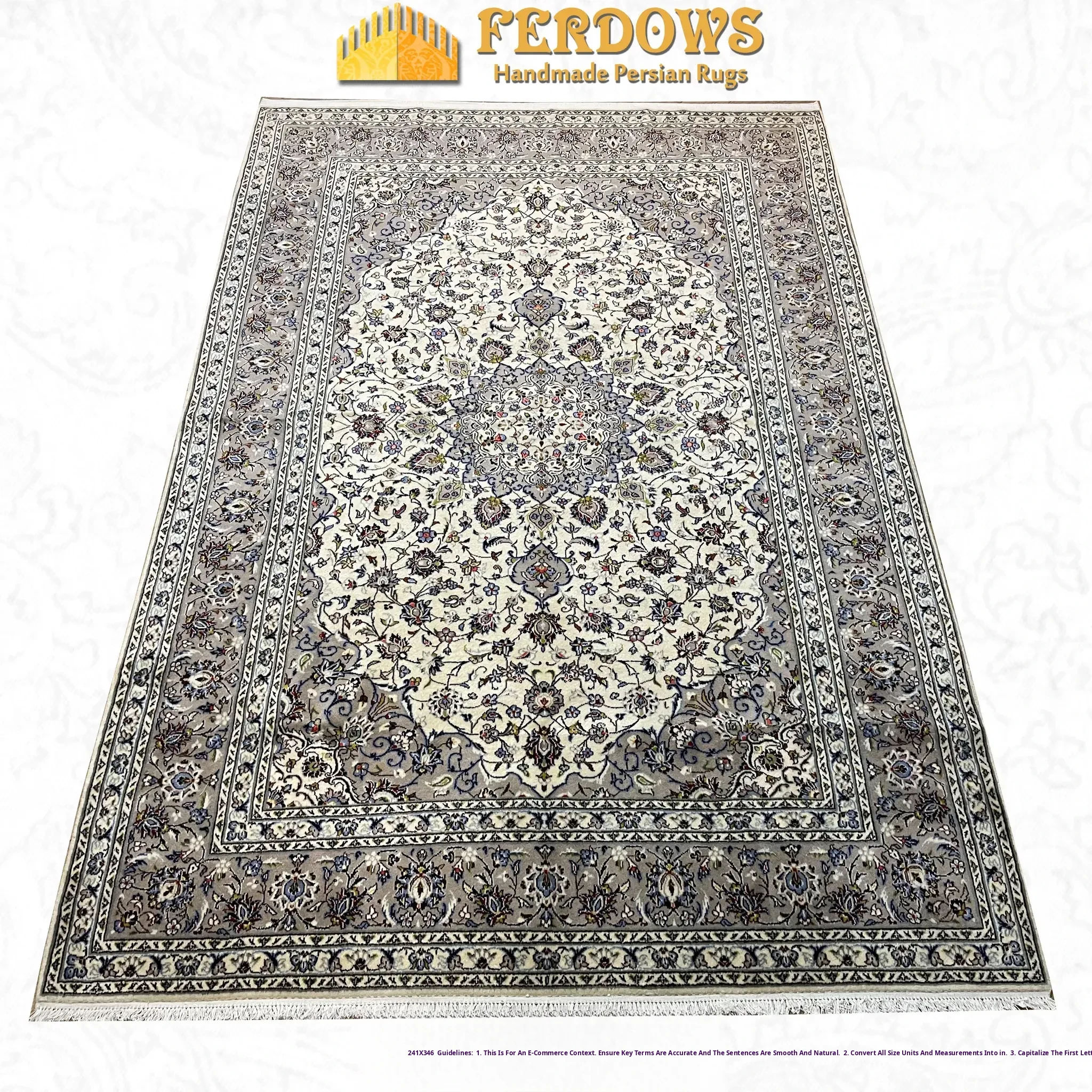 FERDOWS Persian Carpet - Imported Hand-Knotted Luxury High-Density 100% Pure Wool European Rug, Exquisite Craftsmanship for Elegant Interiors
