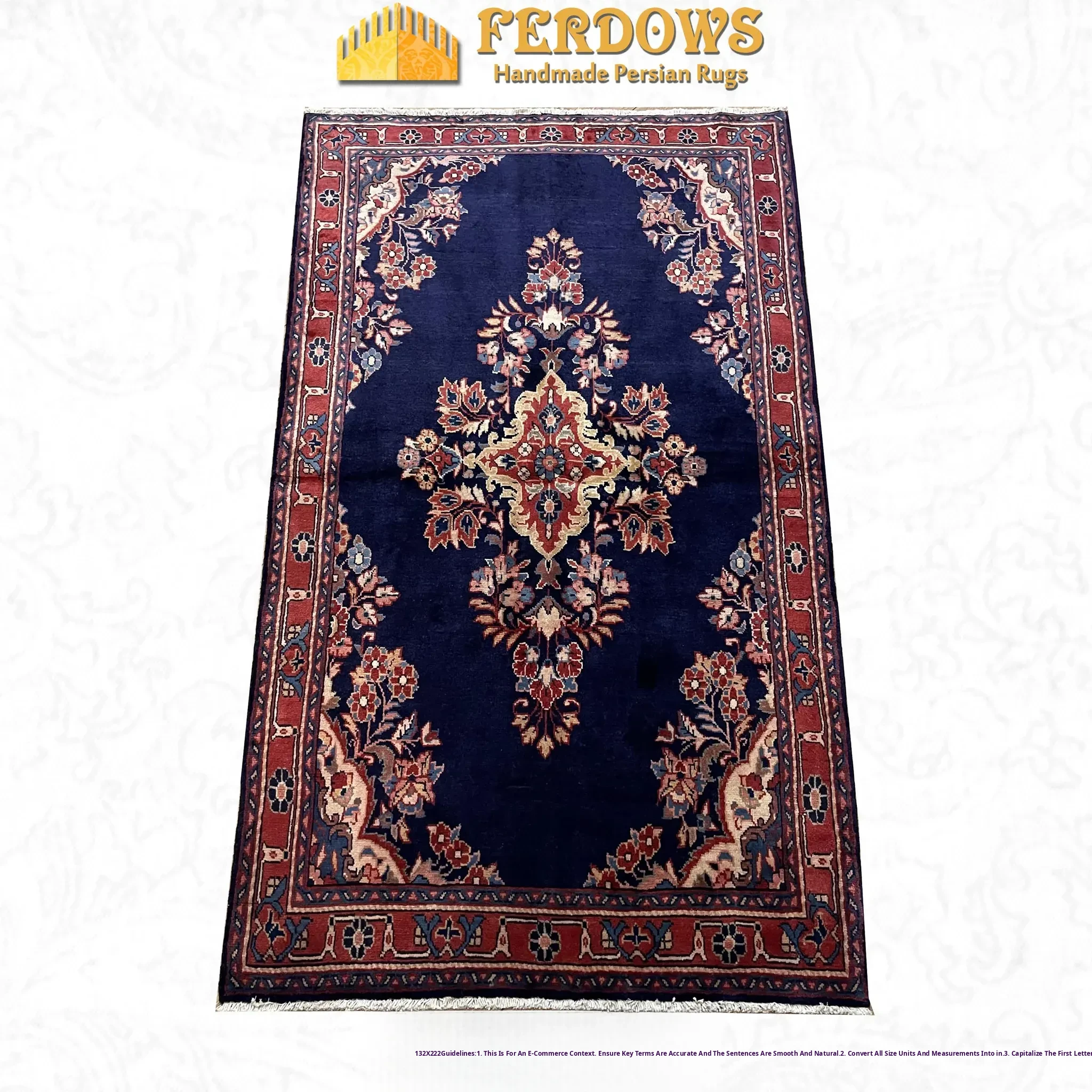 FERDOWS Authentic Persian Hand-Knotted Wool Carpet – Elegant European & American Style for Modern Chinese Bedrooms, Perfect for Bedside Décor
