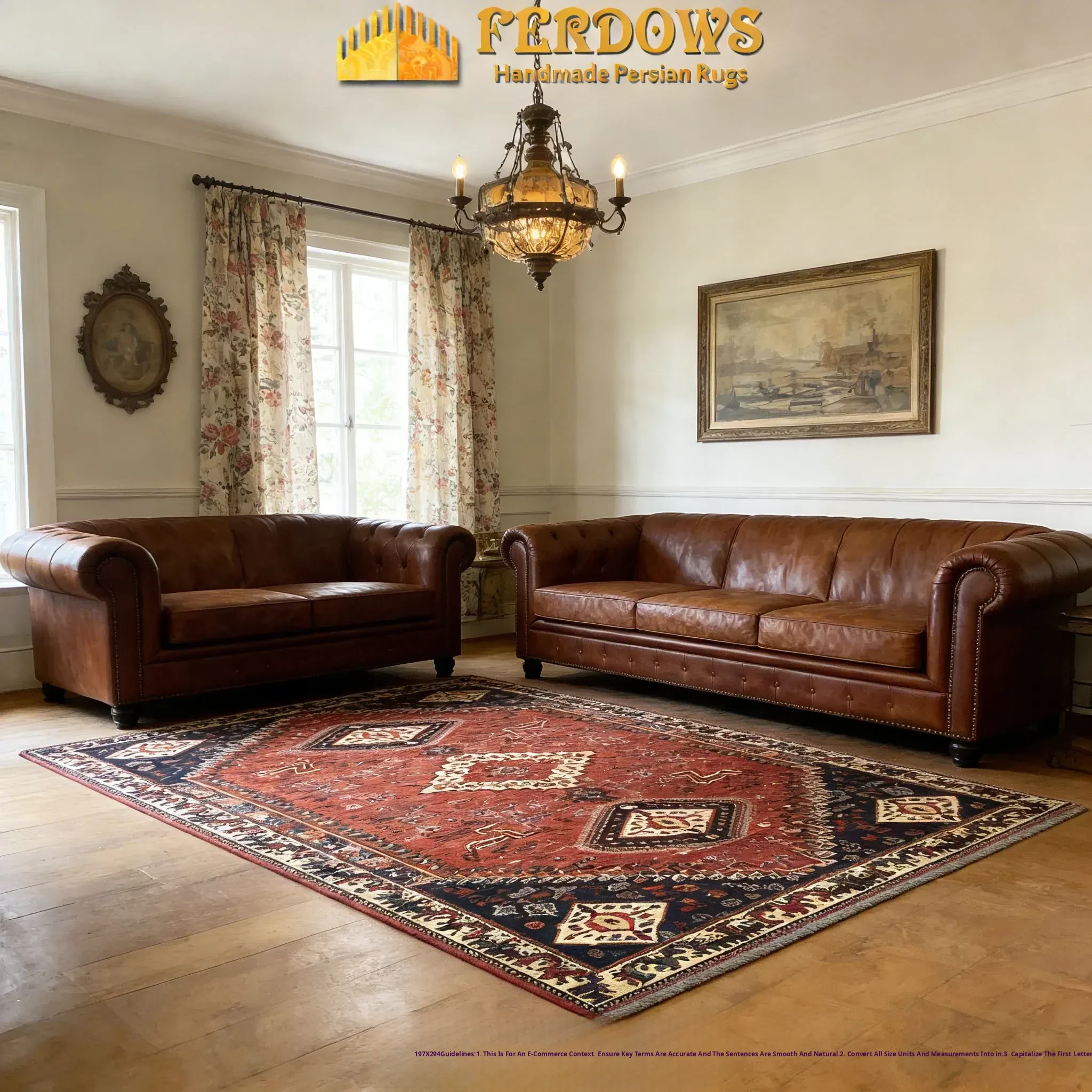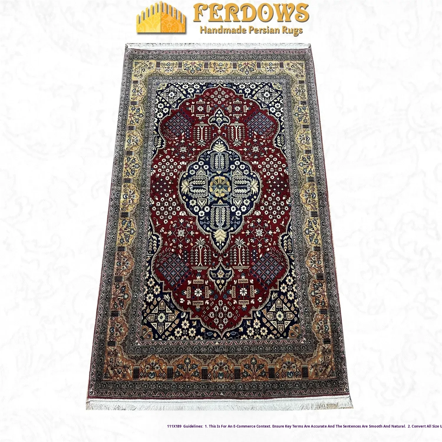 FERDOWS Handcrafted Imported Wool Carpet - Exquisite Persian Style with European and American Influences, Perfect for Traditional and Modern Décor