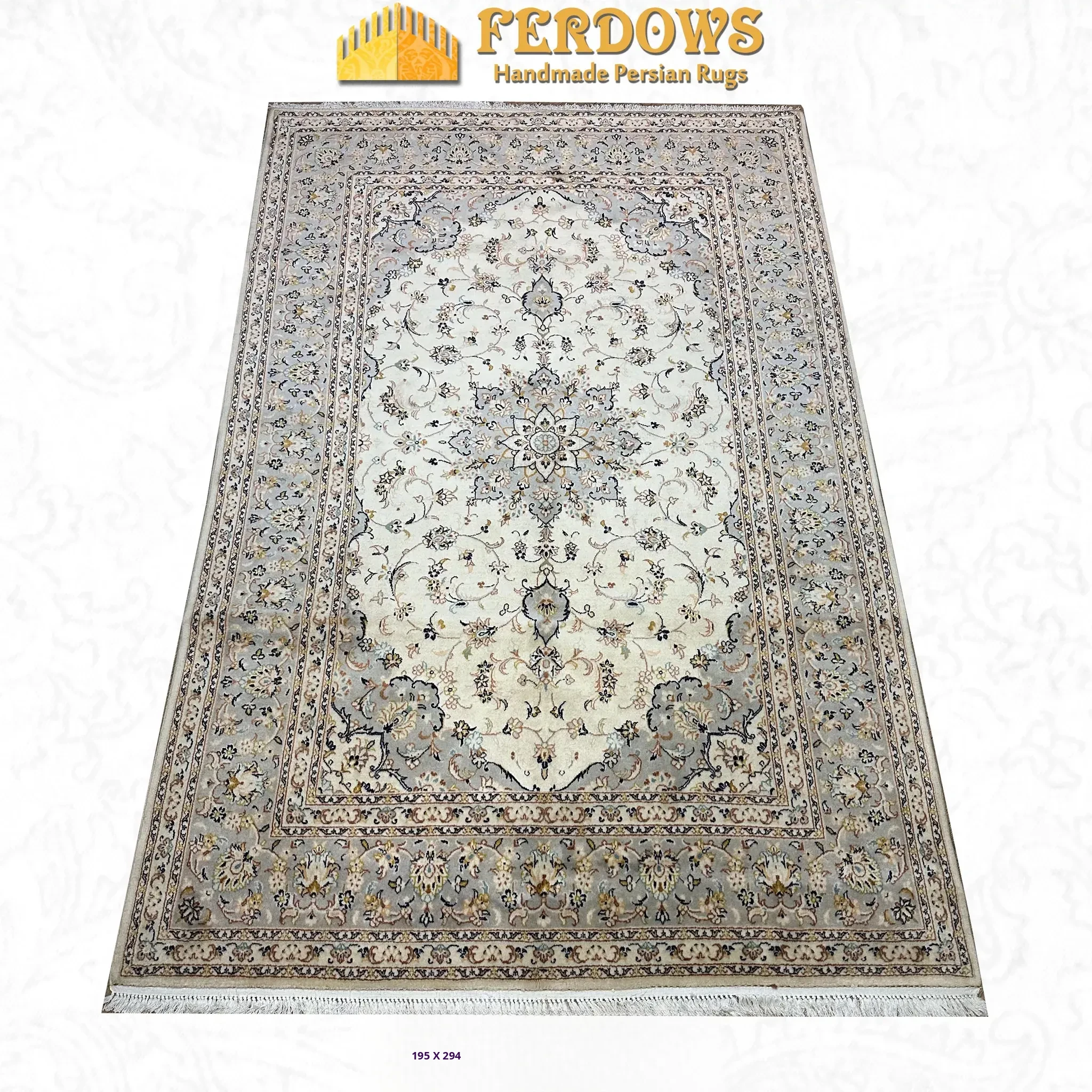 FERDOWS Authentic Persian Carpet - Hand-Knotted Wool, European Nordic French Classic Design for Elegant Living Rooms