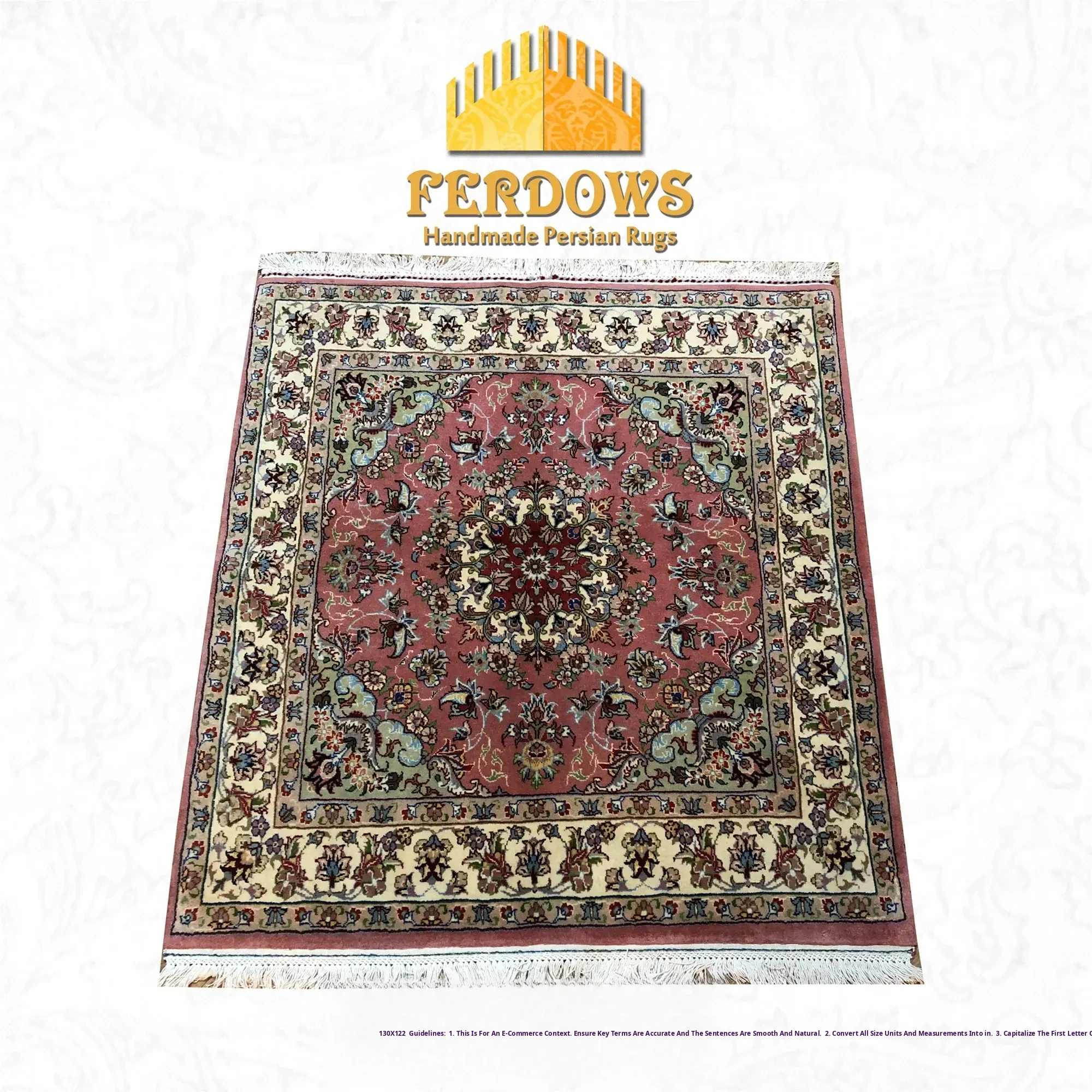 FERDOWS Authentic Persian Carpet - Hand-Knotted, Pure Wool, High-Density Luxury Rug for Villas - Exquisite Craftsmanship and Timeless Elegance