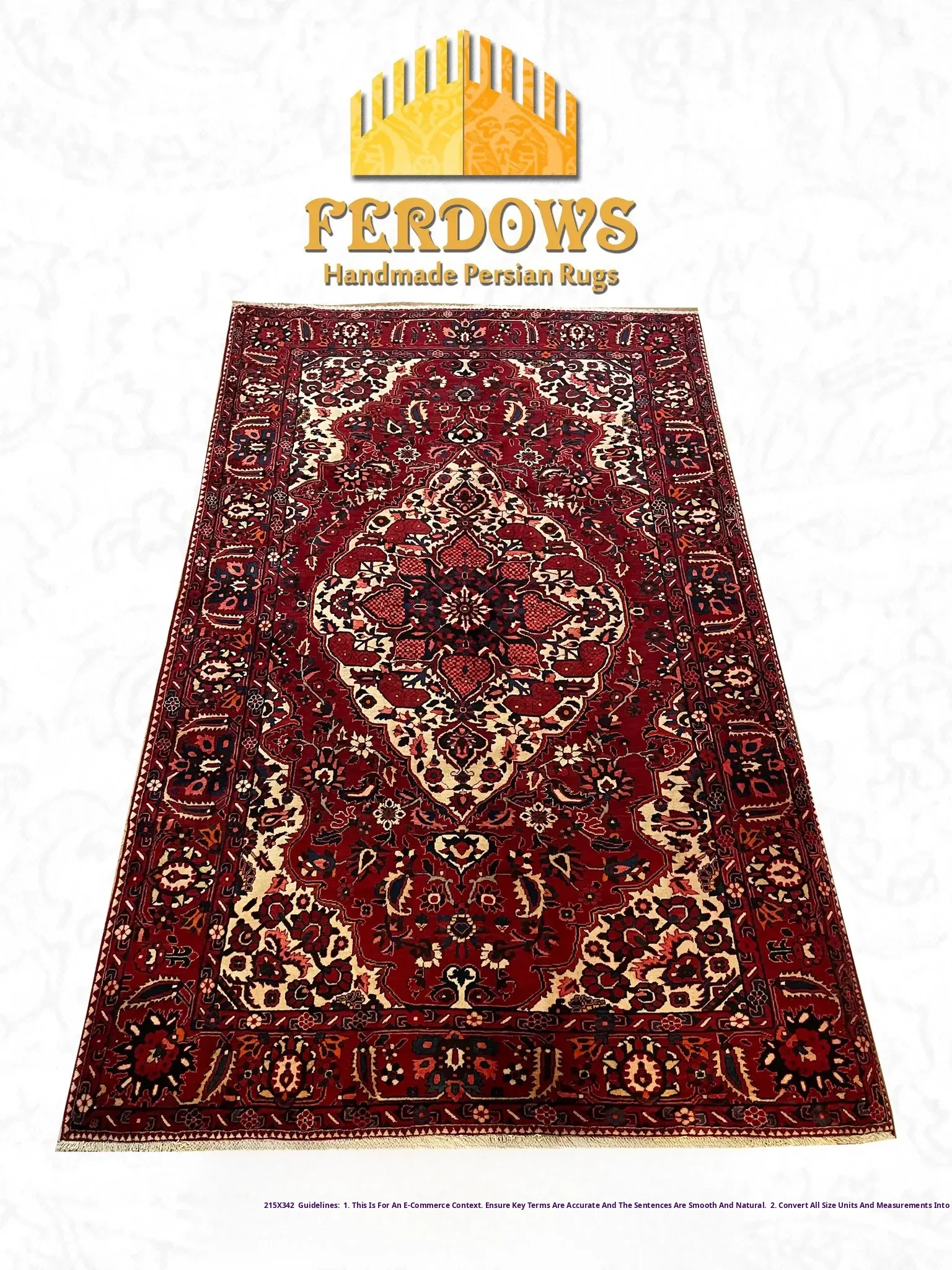 FERDOWS Handcrafted Persian Wool Rug - Elegant European, American, French & Chinese Styles for Bedroom & Bedside Décor
