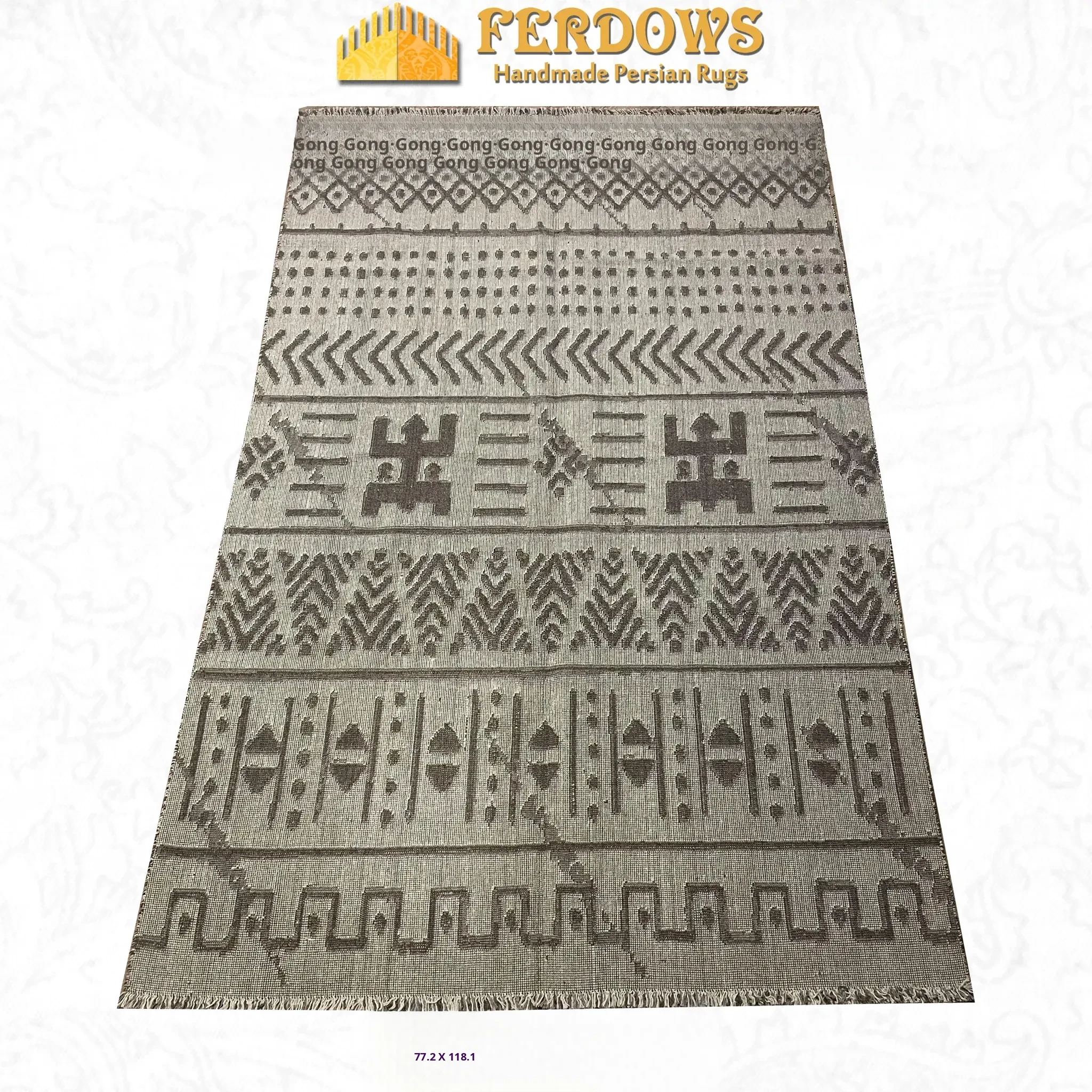 FERDOWS Authentic Handwoven Kilim Carpet - Imported Pure Wool, Modern Minimalist Vintage Ethnic Design, Perfect for Stylish Home Decor