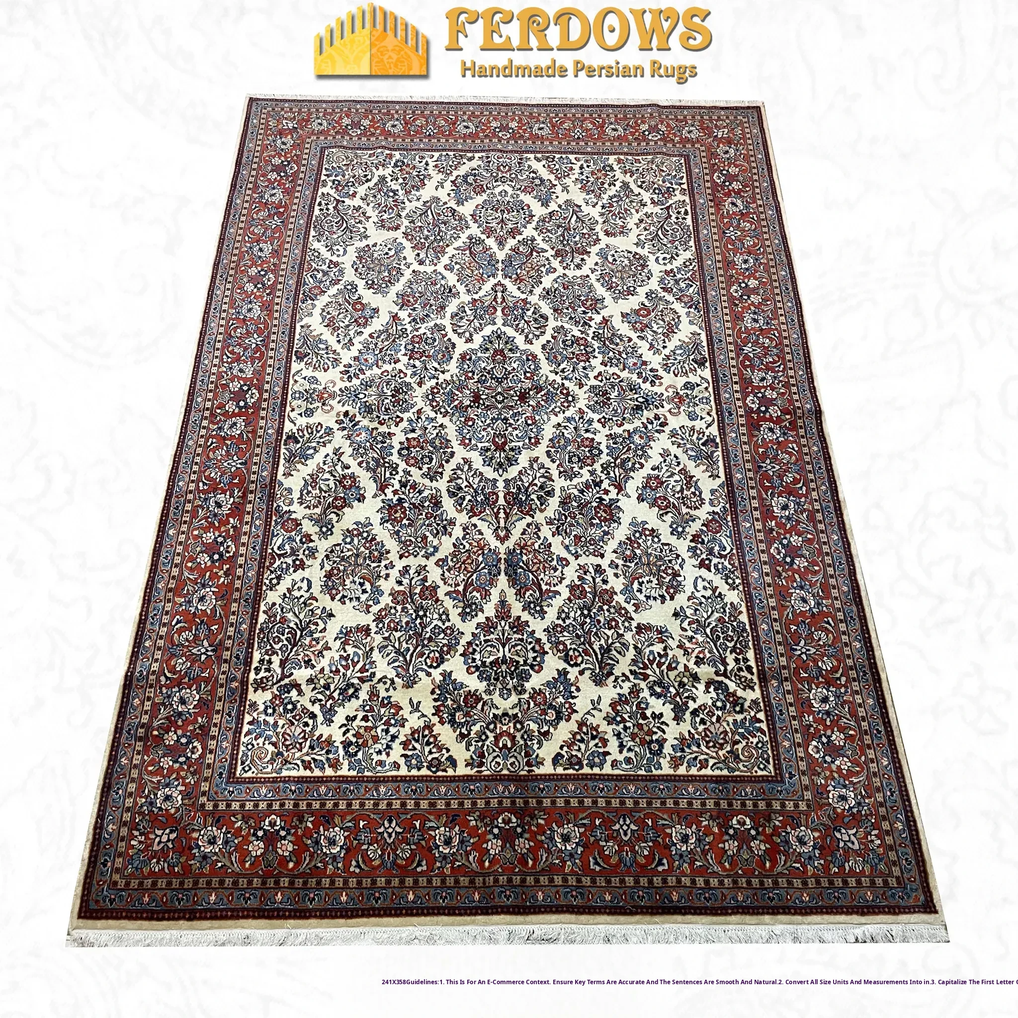 FERDOWS Authentic Imported Persian Carpet - Handcrafted Pure Wool, Elegant European & American Style for Living Room & Bedroom