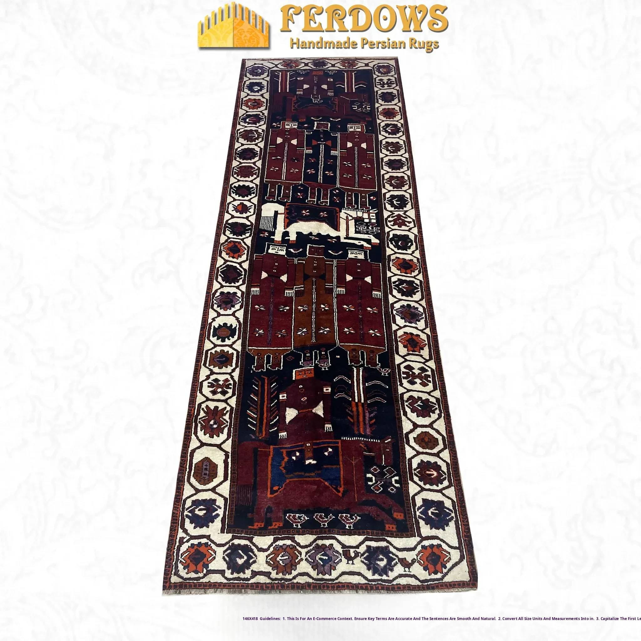 FERDOWS Authentic Persian Carpet - Hand-Knotted Pure Wool Runner Rug for Hallways, Featuring Animal and Equine Designs - Imported Quality for Elegant Home Décor