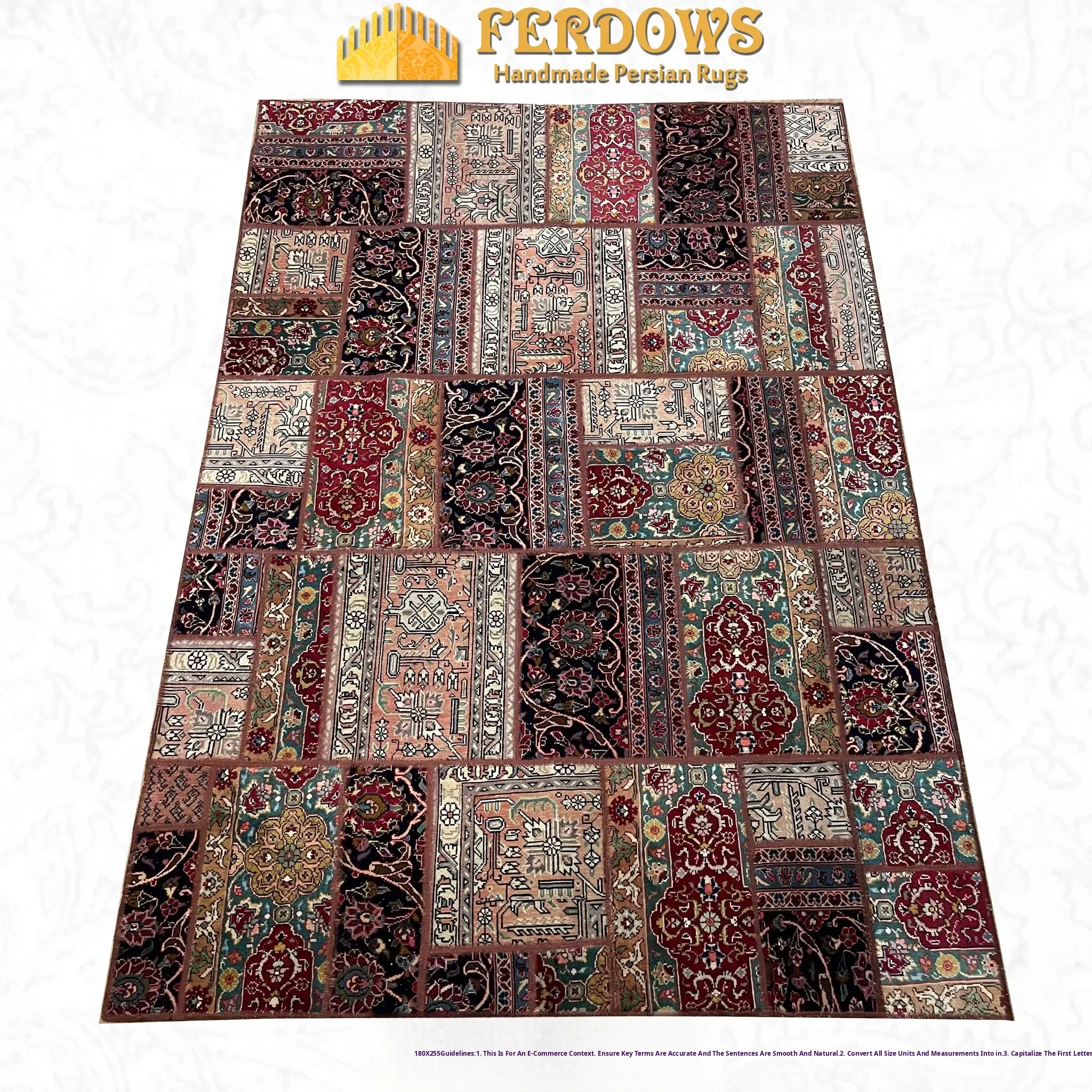 FERDOWS Handwoven Vintage Persian Area Rug - Original Imported Pure Wool Carpet with Unique Patchwork Design, Perfect for Adding Exotic Charm to Your Space!