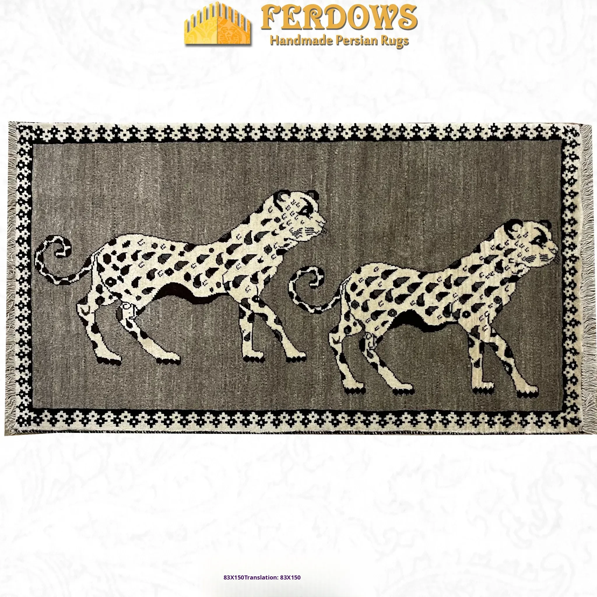 FERDOWS Handmade Persian Carpet / Tapestry / Wall Hanging - Vintage Leopard Design, 100% Pure Wool, Perfect for Your Bedroom Decor