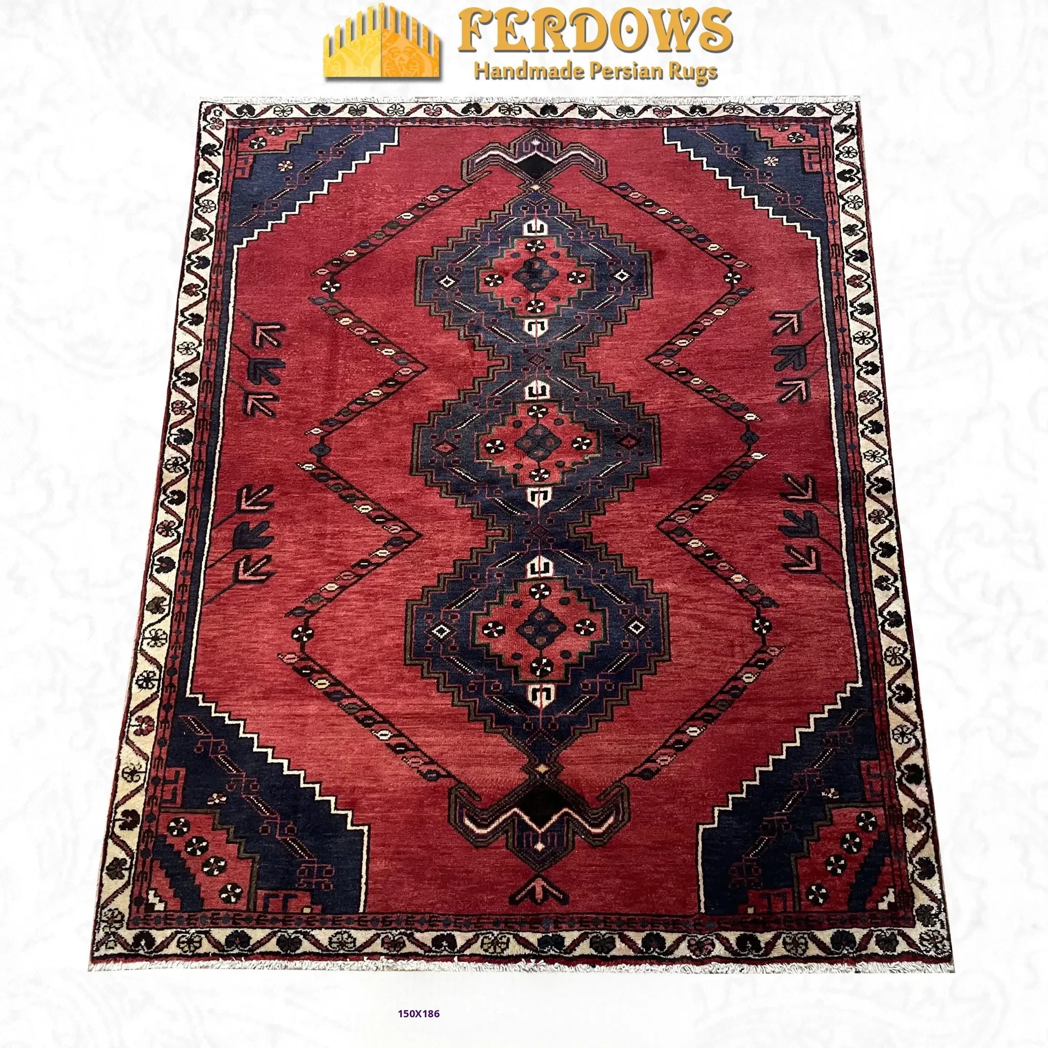 FERDOWS Authentic Persian Carpet - Hand-Knotted Wool Vintage American Ethnic Style Area Rug for a Timeless Living Room Ambiance