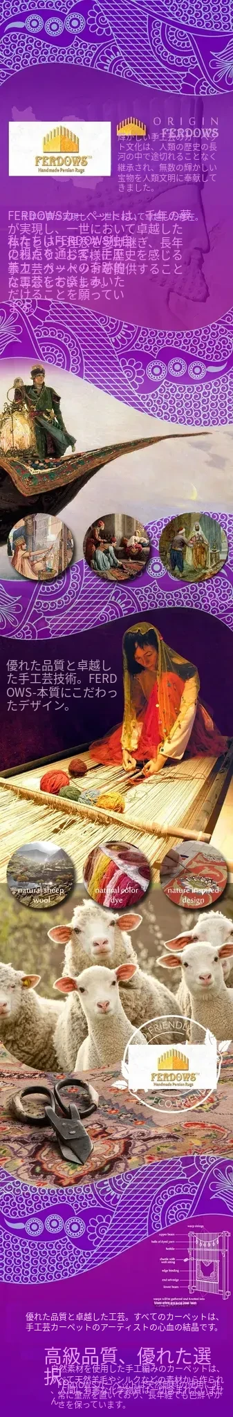 FERDOWSペルシャ絨毯 本場直輸入 手作り結び 純羊毛使用 リビング用 アメリカンビンテージ トライバルデザインの遊牧民スタイル