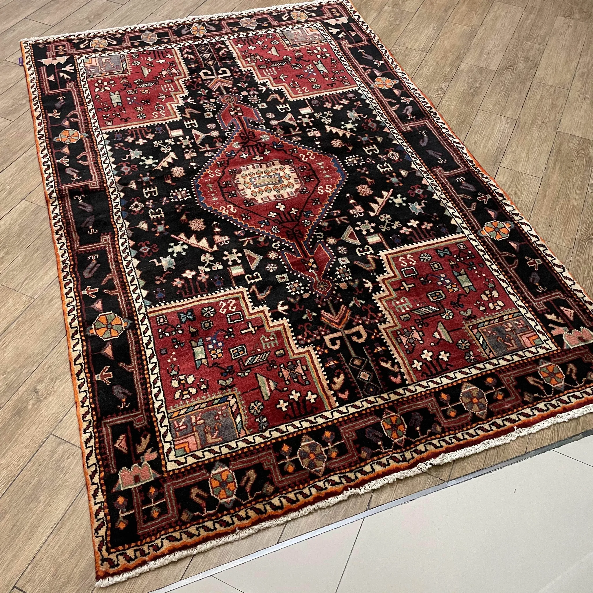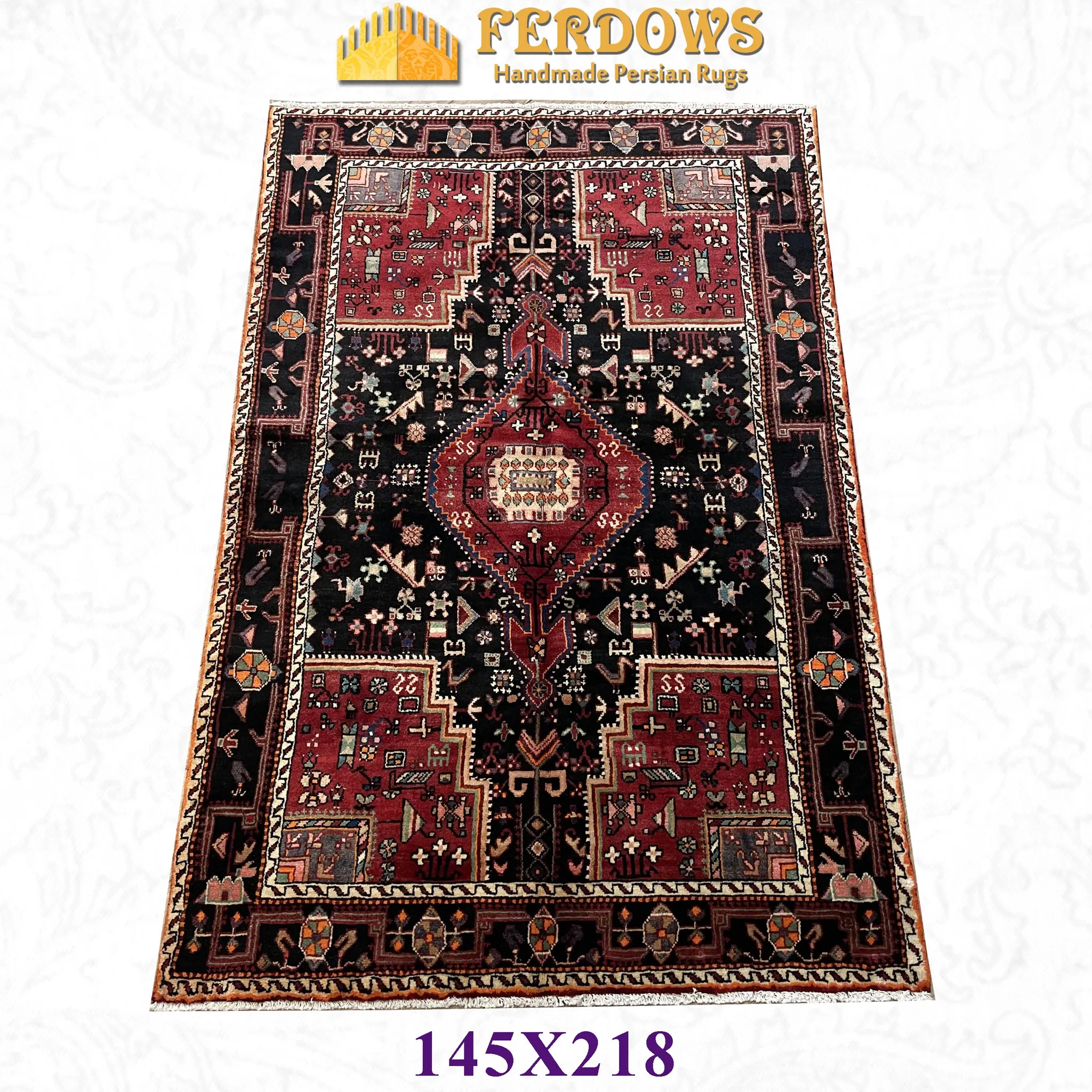 FERDOWS ペルシャカーペット 直輸入 手織り 100%ウール アメリカンヴィンテージ風 ノマディックスタイル リビング・書斎に最適なラグ。高級感あふれる一品で、居心地の良い空間を演出します!